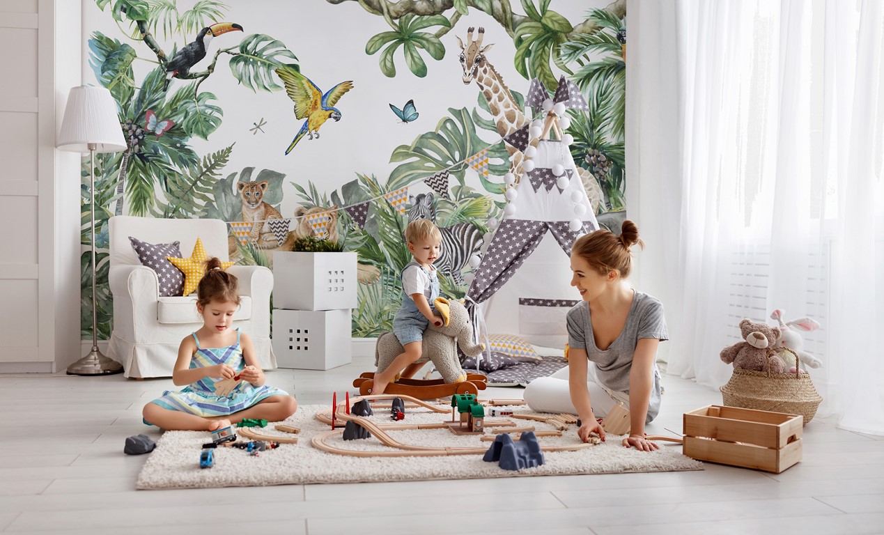 Beställ väggmålningen ”Exotiska djur” idag och gör din lilla dag full av glädje och kreativitet!