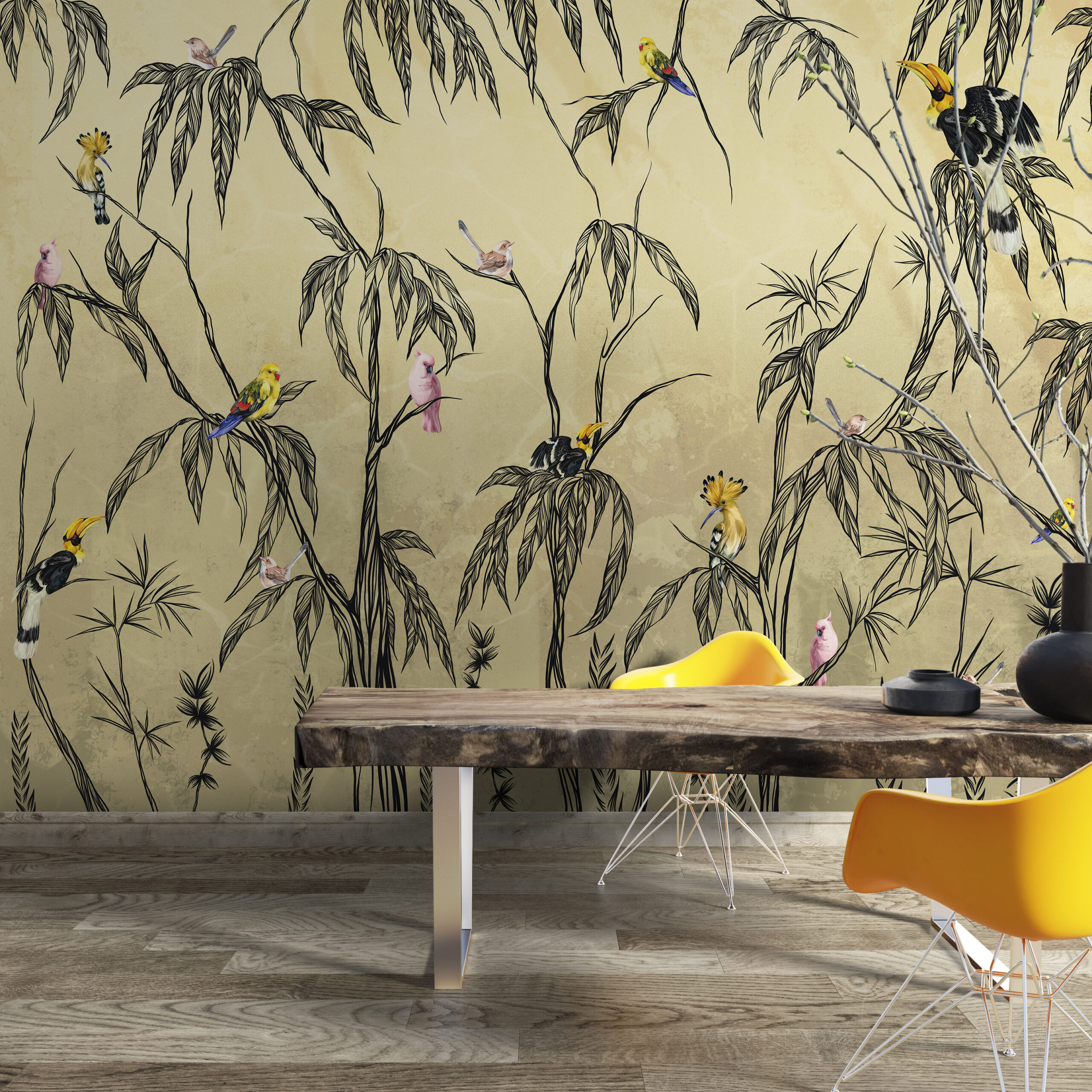 Den färgglada fågelväggmålningen är det perfekta sättet att liva upp din interiör och lägga till en original touch. Detta vackra mönster föreställer en mängd olika färgglada fåglar som kommer att ge liv åt det omgivande rummet.