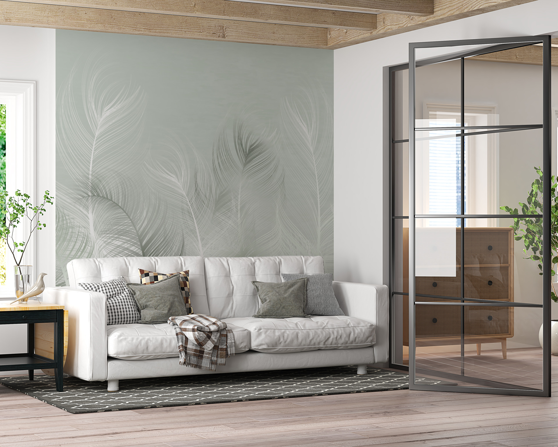 Transportera dig själv till en värld av delikatess och lätthet med vår ”Lightness of Feathers” väggmålning. Det unika fjädermotivet ger din inredning en ny karaktär och den uppfräschade designen kommer att glädja varje besökare.