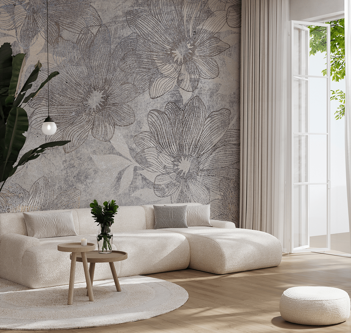 En fototapet som inte skriker – utan snarare viskar elegans och enkelhet. Det är inte bara en dekoration, utan en del av en livsstil baserad på estetisk balans och noggrannhet.