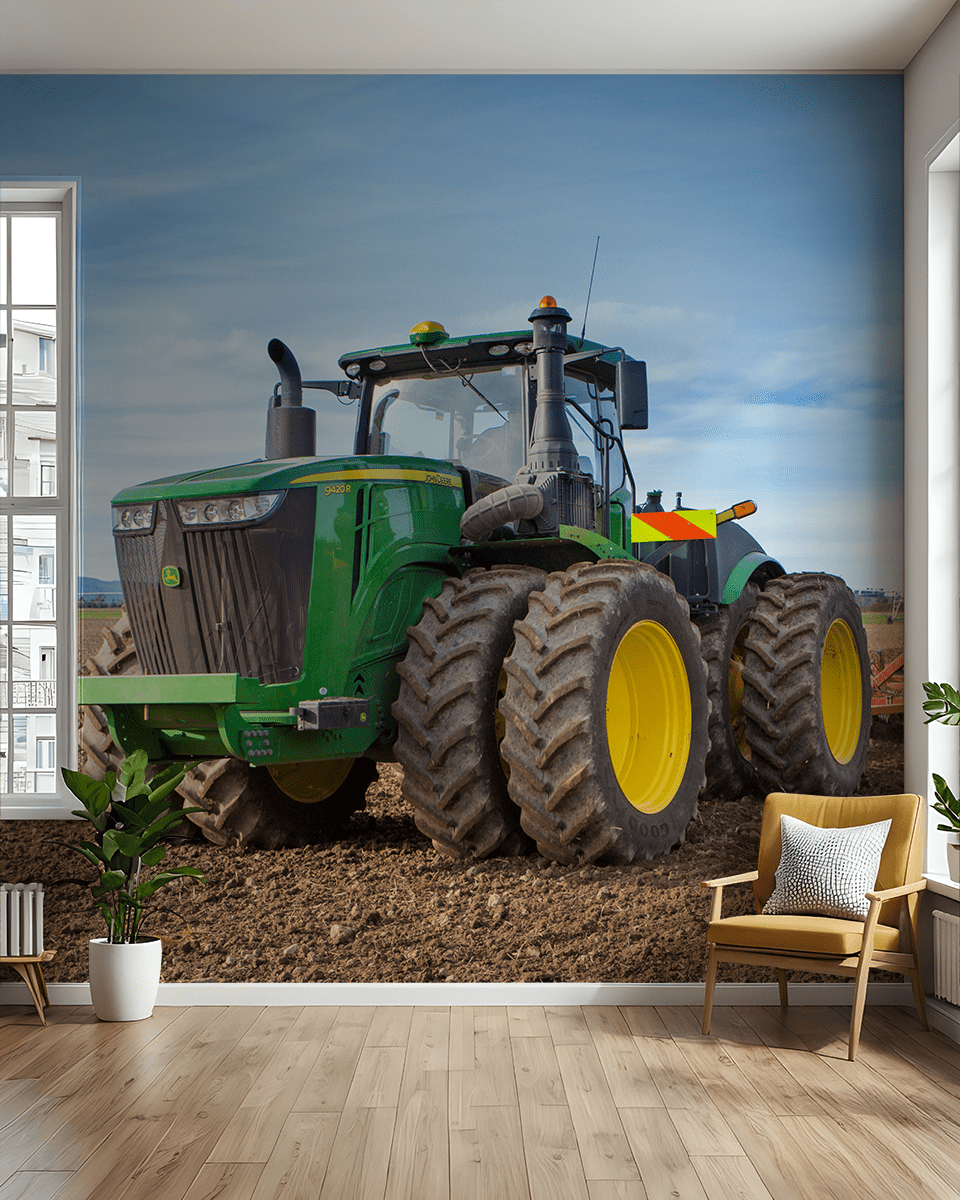 Inför en dynamisk och inspirerande atmosfär i din interiör med fototapeten ”Green Hero”. Detta imponerande motiv avbildar en kraftfull, grön traktor mot en bakgrund av vidsträckta fält, vilket symboliserar kraft, uthållighet och närhet till naturen. Intensiv grönska och detaljerade element återspeglar maskinernas kraft och charmen i det lantliga landskapet, vilket skapar en interiör full av liv och energi.