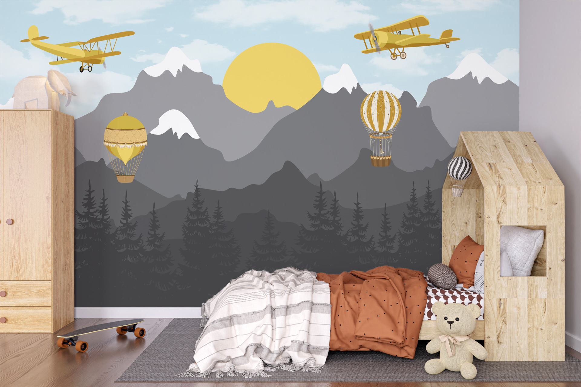 Gå över toppen i alla rum med denna magiska Golden Sun in the Mountains väggmålning.