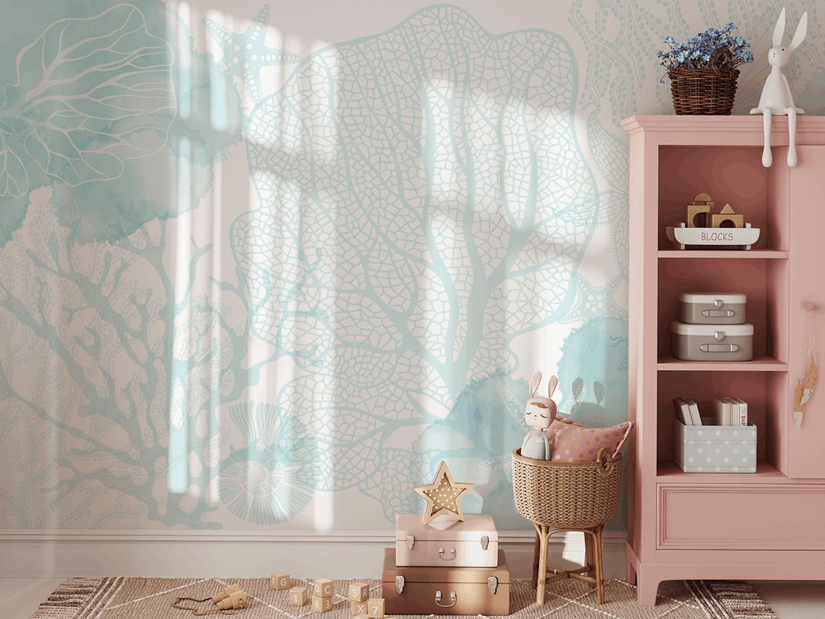 Skapa en unik atmosfär i ditt hem med fototapeten ”Havets hemligheter”. Detta subtila akvarellmönster inspirerat av korallrev och marin vegetation transporterar dig till havets magiska djup och ger utrymmet fräschör och harmoni. Delikata blå nyanser och subtila detaljer av korall och sjöstjärnor skapar en komposition som passar perfekt in i moderna, skandinaviska och klassiska arrangemang.