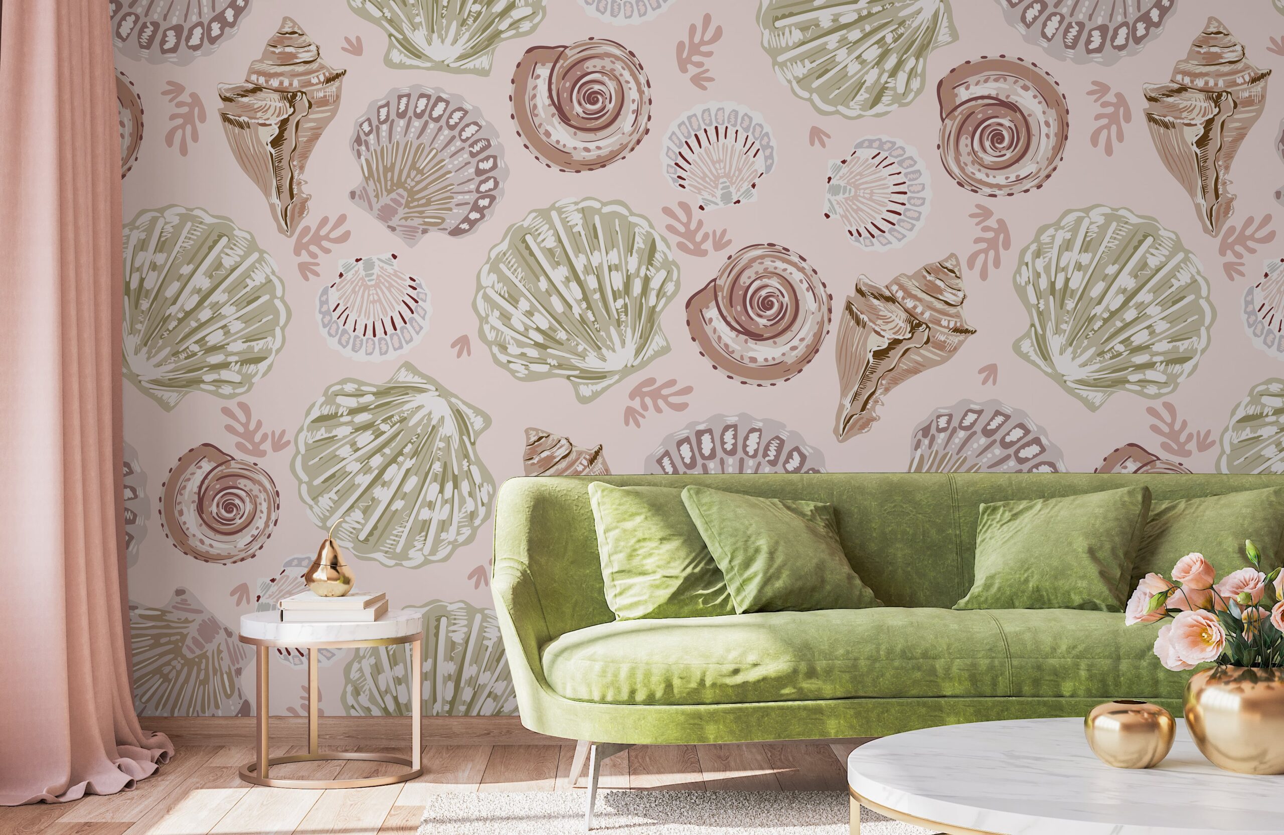 Inför en atmosfär av lugn och fräschör i ditt hem med fototapeten ”Sea Gentleness”. Detta delikata pastellmönster med motiv av snäckor och havsskatter framkallar havsbris och lugna vågor, vilket ger utrymmet en lätt och lugnande estetik. Dämpade färger och sofistikerade detaljer passar harmoniskt in i både moderna och klassiska inredningsstilar.