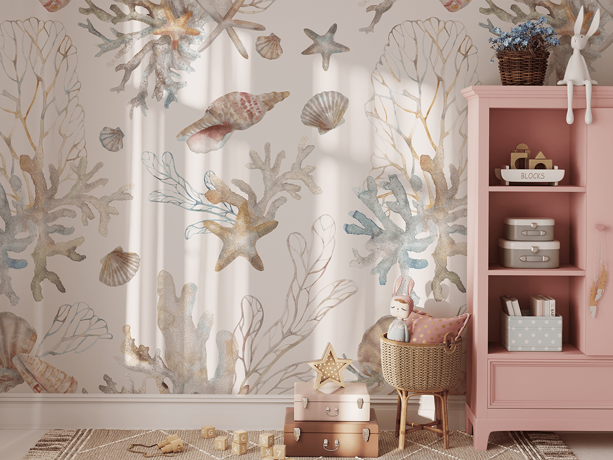 Inför en unik atmosfär i ditt barns rum med fototapeten ”Ocean Land”. Denna livfulla, färgglada fototapet avbildar en fantastisk värld av undervattensvarelser, koraller och havsdjur, och transporterar din lilla till ett fantastiskt undervattensland av drömmar. Livfulla färger och charmiga motiv kommer att liva upp utrymmet och skapa en glädjefylld atmosfär som främjar lek och avkoppling.