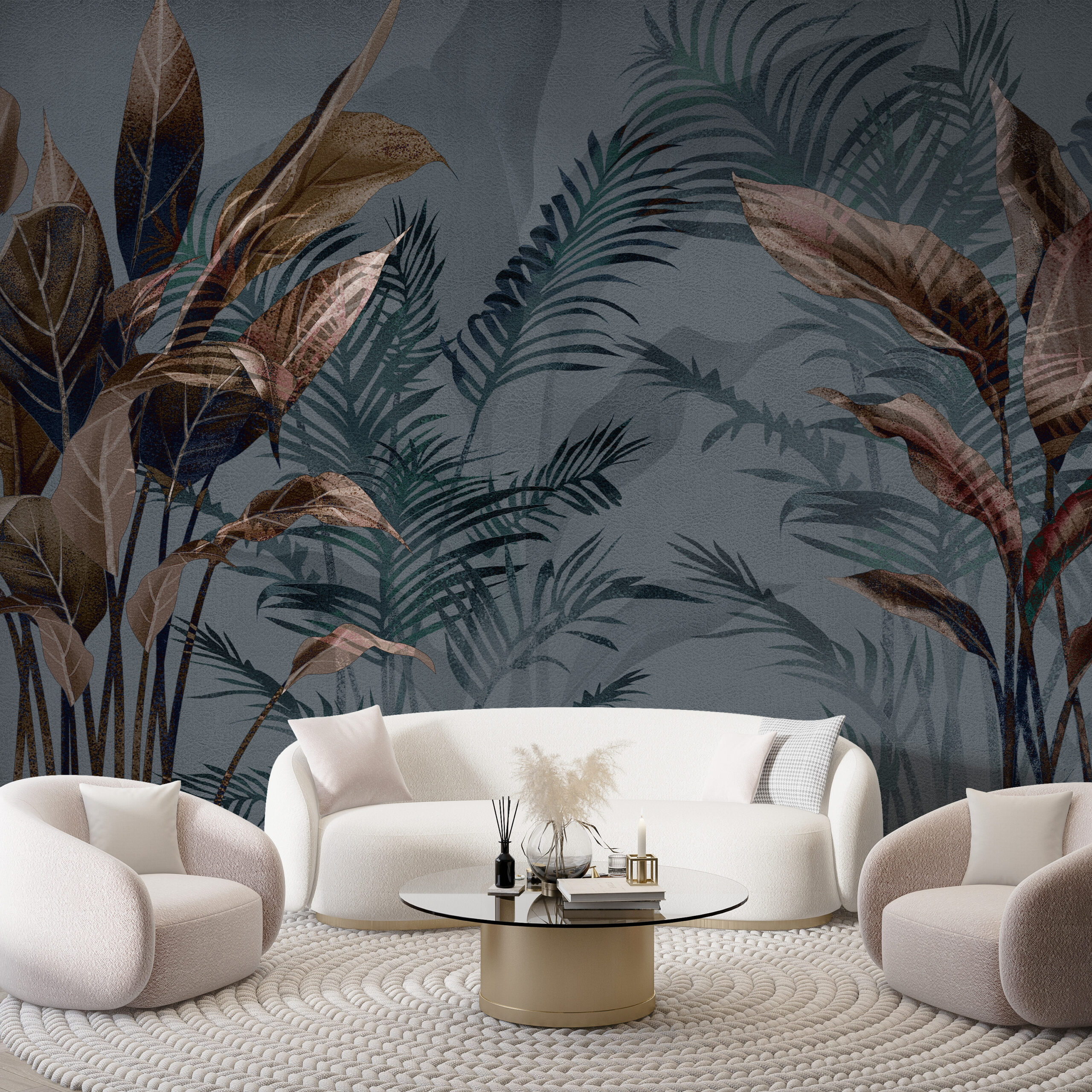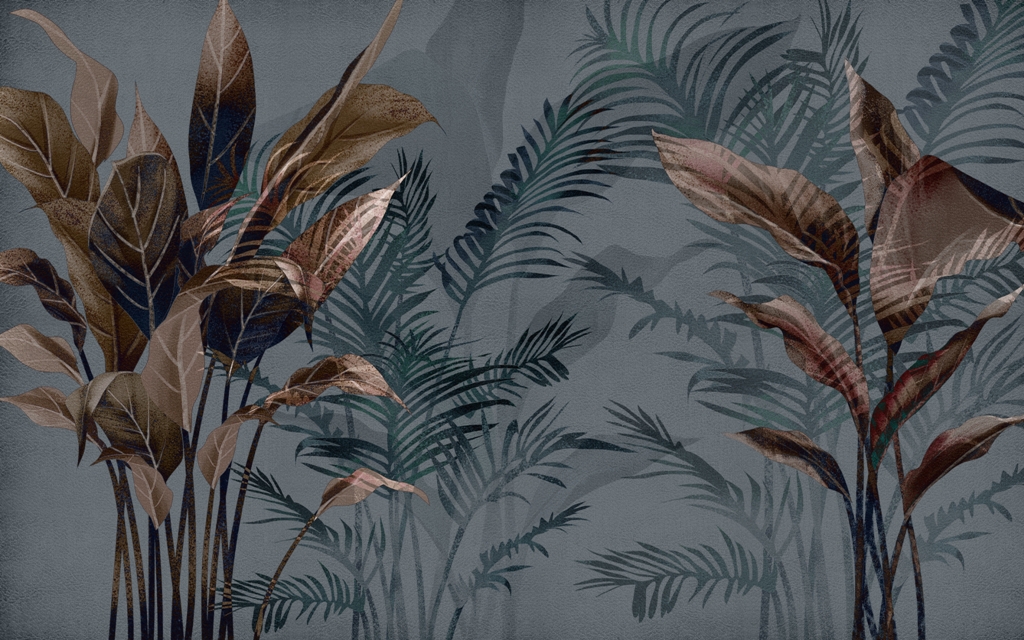 Letar du efter en ovanlig och slående dekoration för din inredning? Denna väggmålning med ett motiv av höga löv kommer att vara ett bra val!