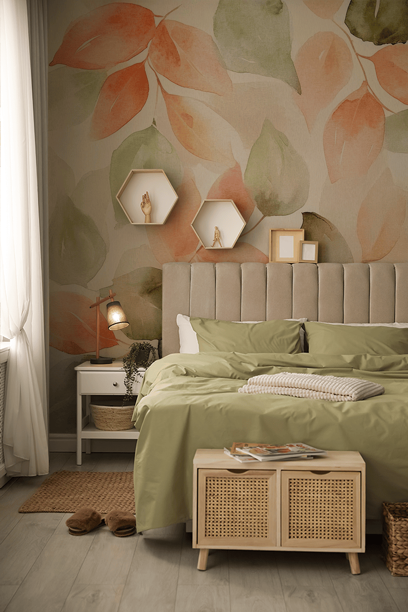 Liv upp din interiör med höstens subtila charm med fototapeten ”Höstsonat”. Detta naturinspirerade akvarellmönster kombinerar pastellnyanser av orange, grönt och beige, vilket skapar en lugn men ändå uttrycksfull komposition av löv. Helheten utstrålar värme, mjukhet och en målerisk lätthet, vilket introducerar en unik atmosfär av säsongsbetonad reflektion och harmoni i rummet.