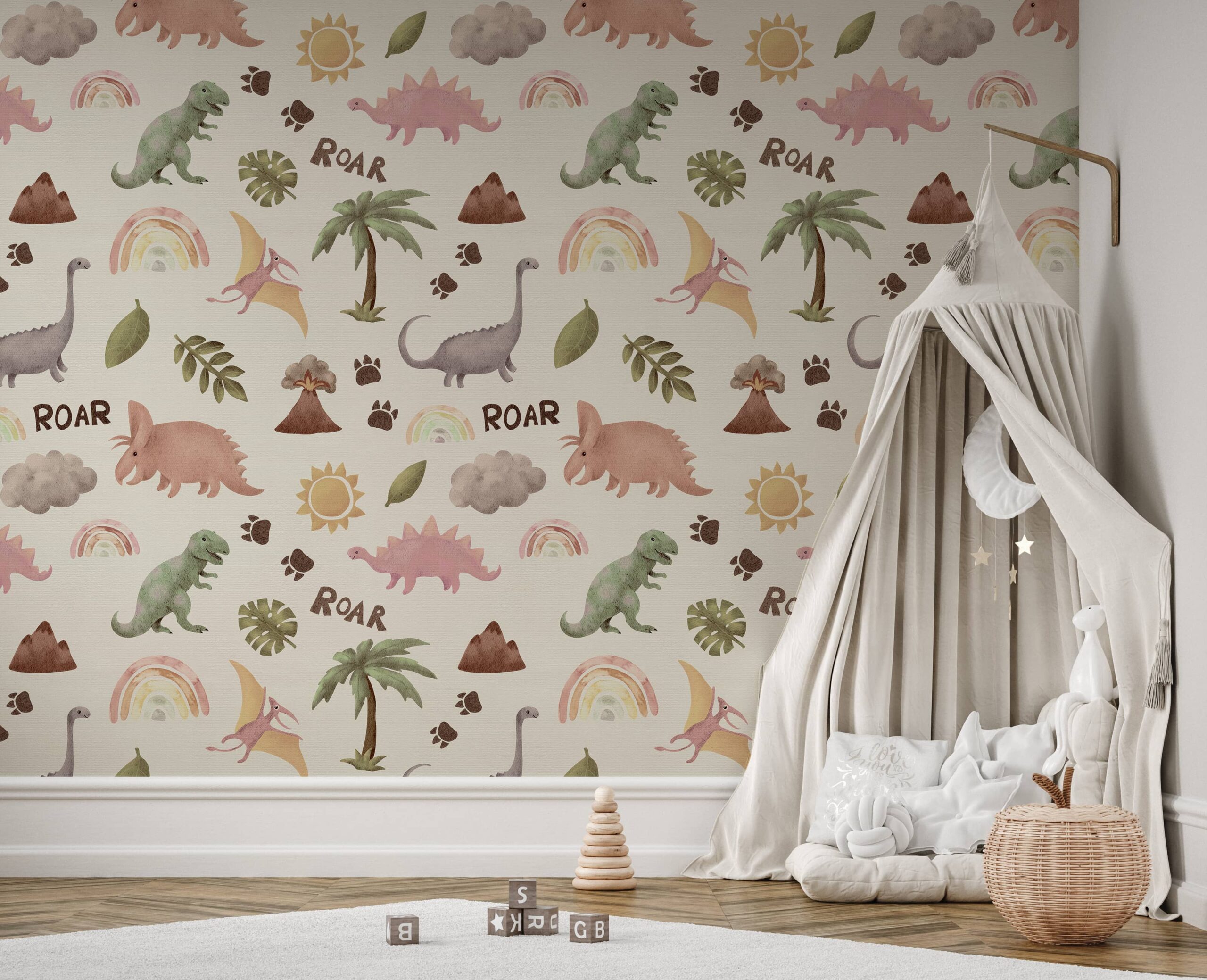 Detta är det perfekta alternativet för barn som älskar äventyr och är fascinerade av dinosaurier. Denna fototapet kommer att liva upp ett barnrum och introducera en glad och fantasifull atmosfär. Mönstret passar perfekt i både moderna och klassiska arrangemang och ger karaktär och glädje till rummet.