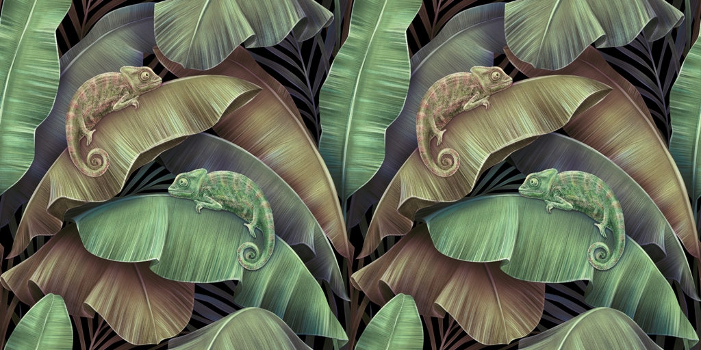 Fototapet Kameleonter i löv
