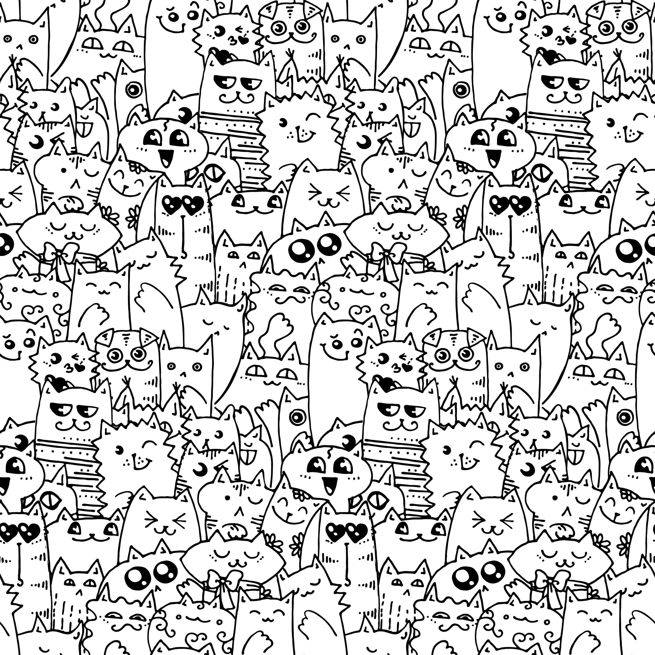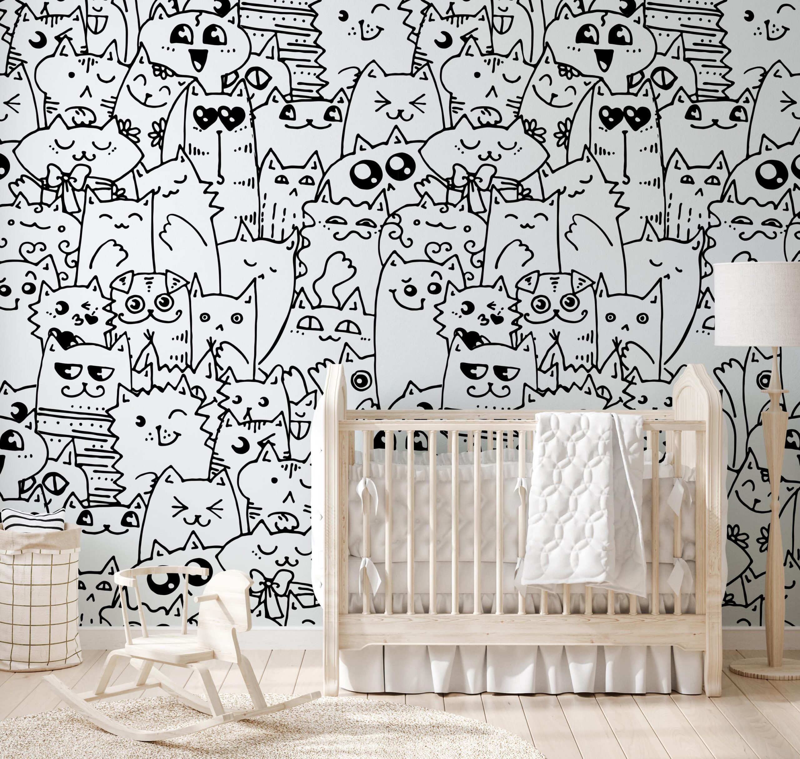 Förvandla ditt barns rum till ett glatt kattunderland med fototapeten ”Cat Crowd”. Detta livliga, svartvita mönster är en riktig parad av bedårande kattungar – var och en med ett unikt uttryck, stil och personlighet! Ett mönster fullt av detaljer och roliga teckningar stimulerar fantasin, inspirerar till lek och får ett leende att väcka varje dag.