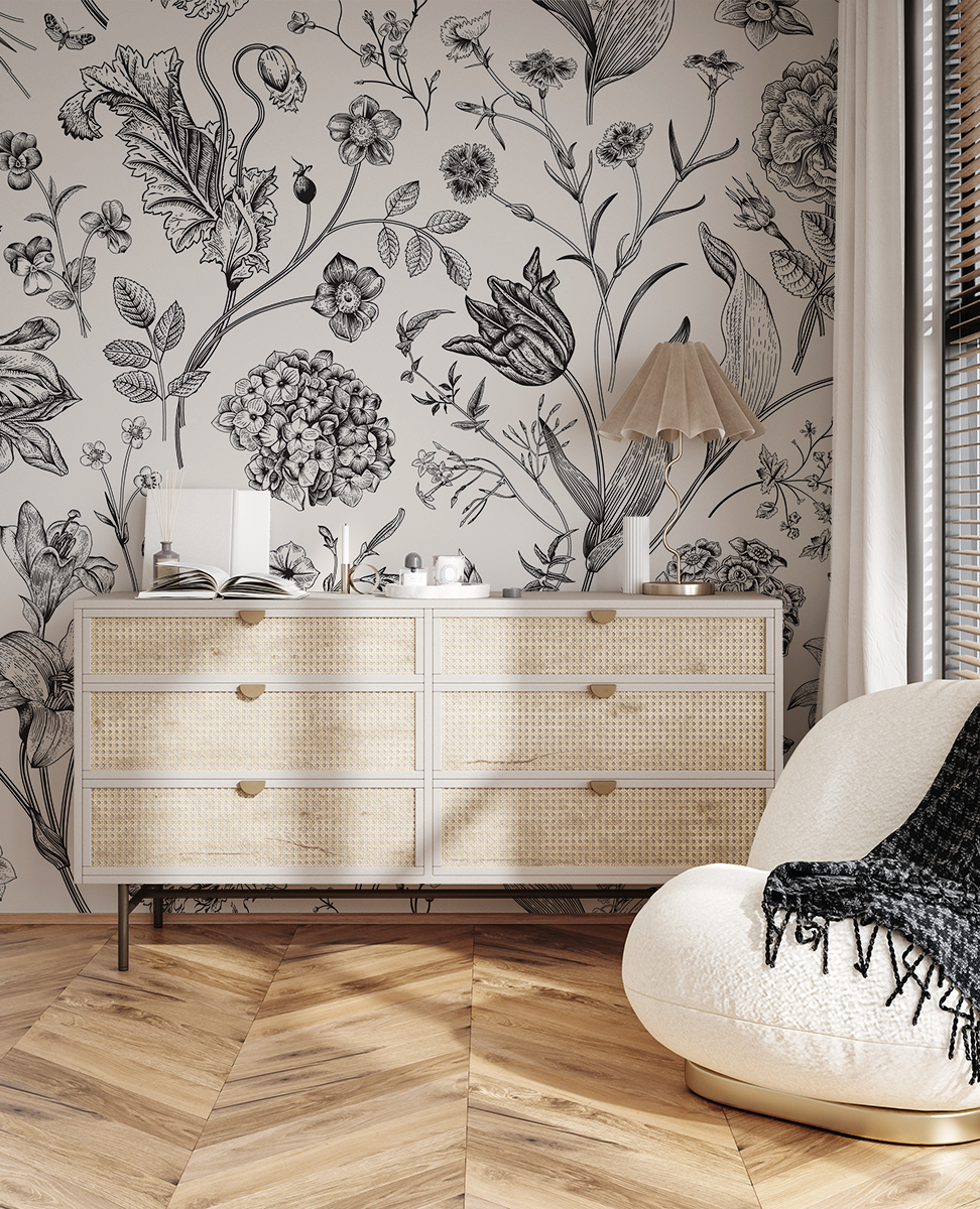 Fototapeten ”Klassisk botanisk elegans” – Tidlös stil, naturlig finess och subtil inredning