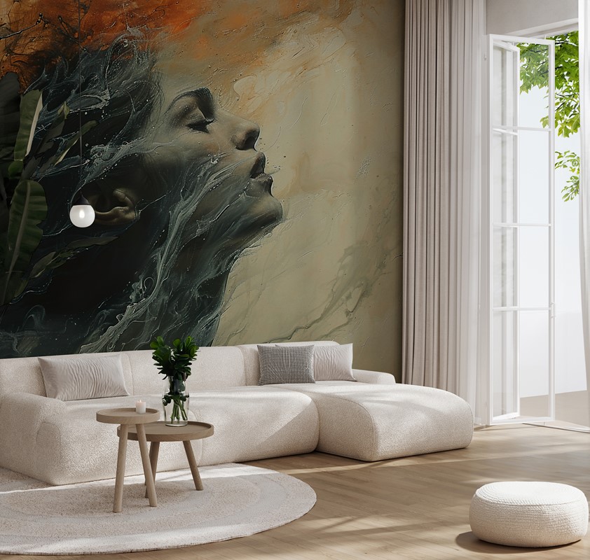 Tapeten ”Kvinnligt porträtt i abstraktion” – sensuellt uttryck, konstnärligt djup och en modern form av inredning