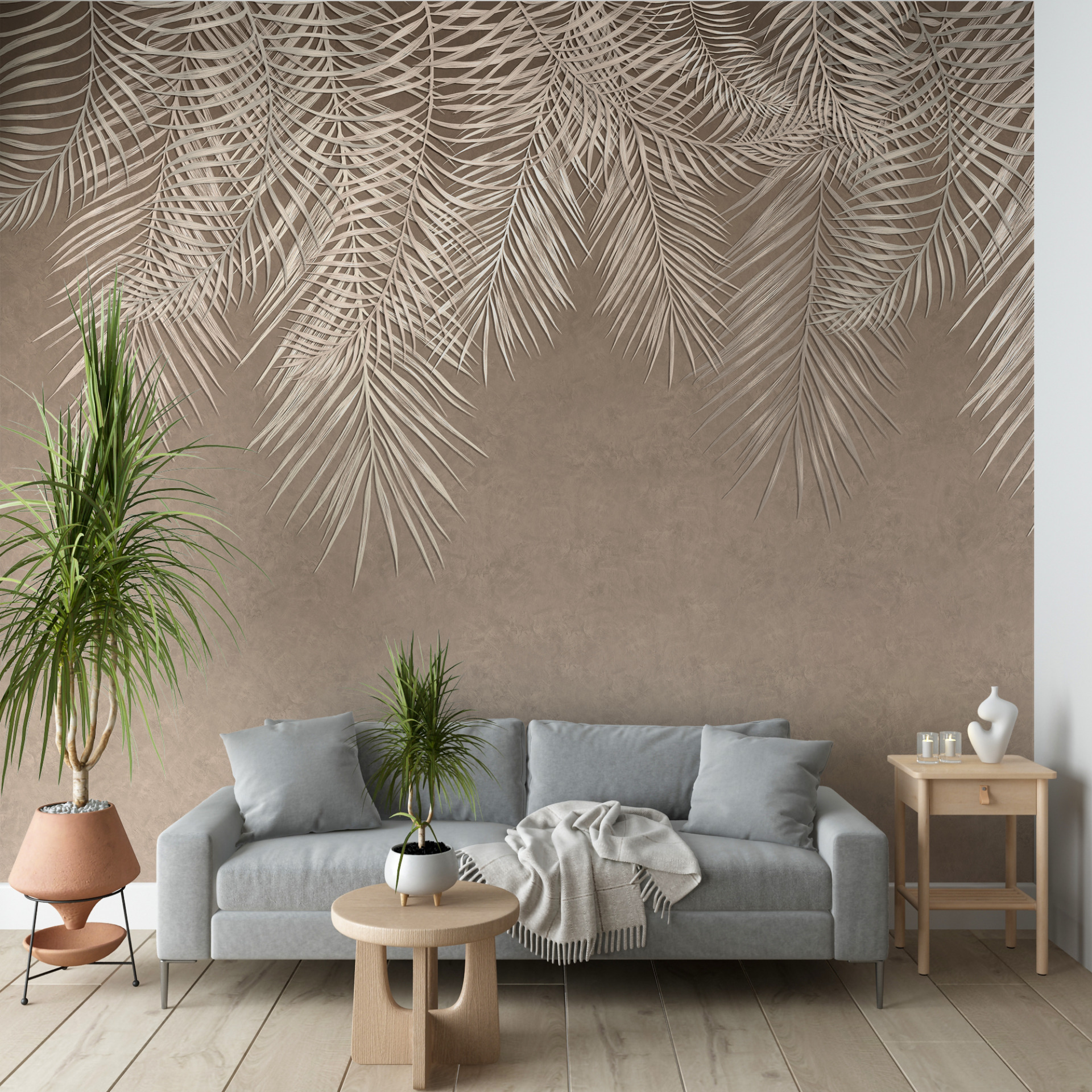 Beställ den ljusa väggmålningen med palmblad idag och lägg till en unik touch i din interiör!