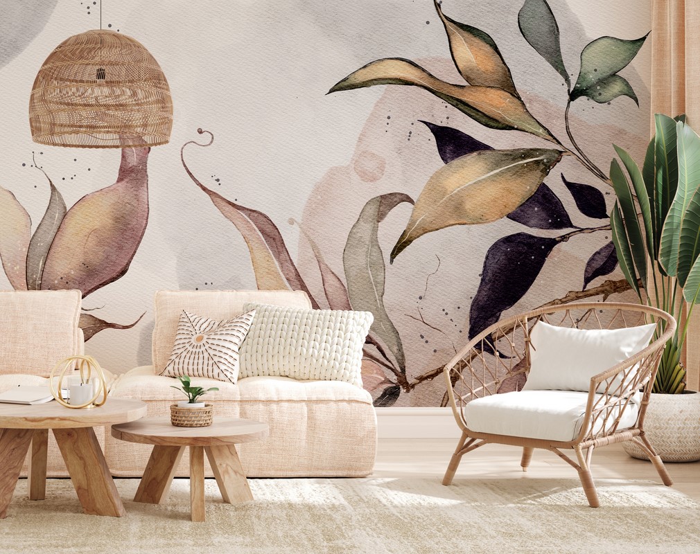 Fototapet Löv på akvarell