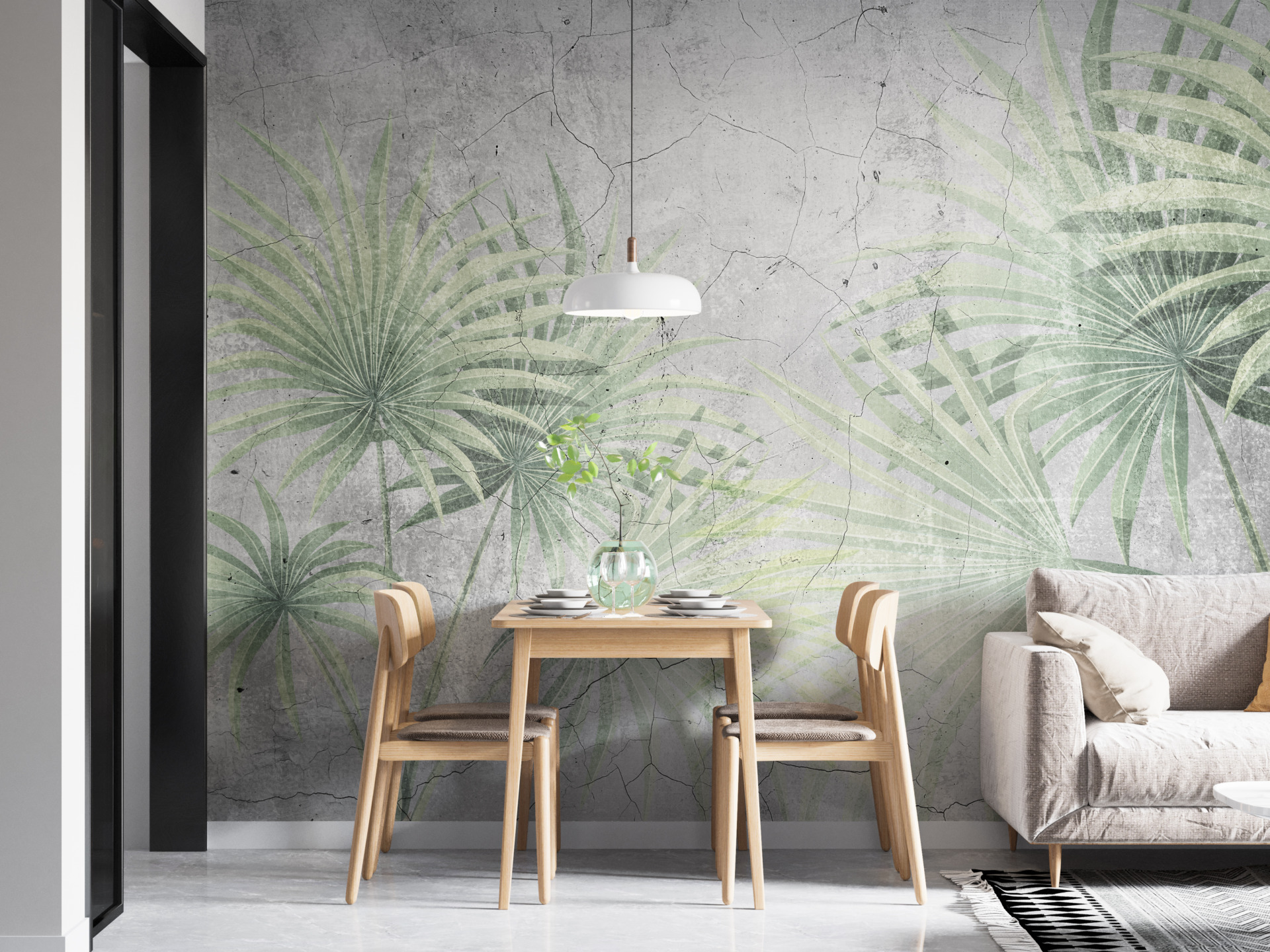 Denna väggmålning skulle vara perfekt oavsett om det är i vardagsrummet, sovrummet eller kontoret. Den slående kontrasten mellan det skira bladverket och den spruckna väggens industriella karaktär kommer att ge dina rum ett unikt utseende.