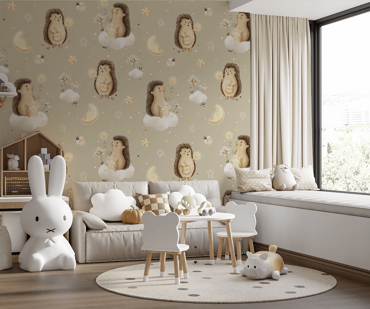 Fototapeten ”Månigelkottar” – en sagovärld, värmen från ett barns fantasi och en charmig dekoration för ett småbarns rum