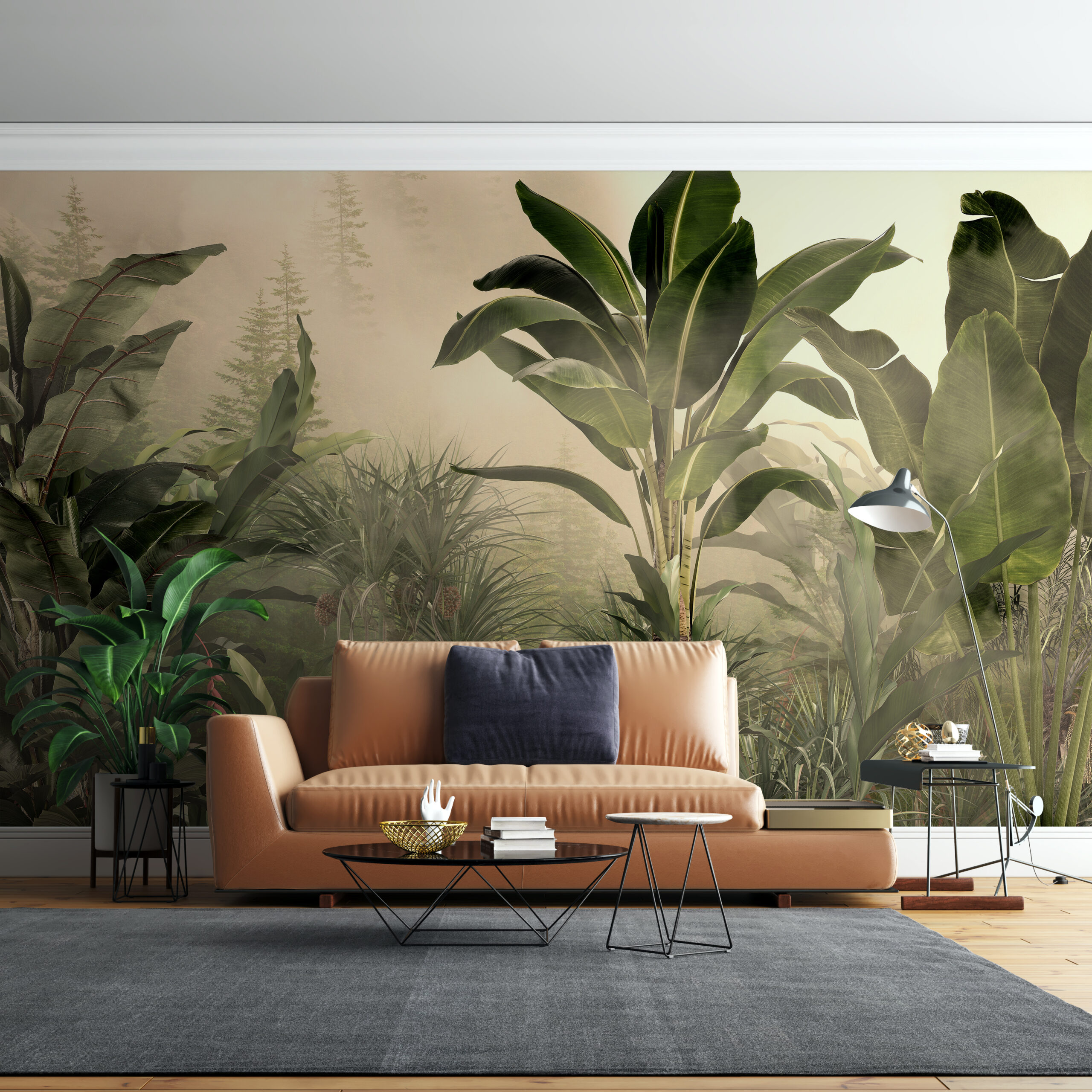 Unna dig ett ögonblick av avkoppling omgiven av exotisk natur – beställ väggmålningen ”Dawn in the Jungle” nu och skapa din egen oas av lugn.