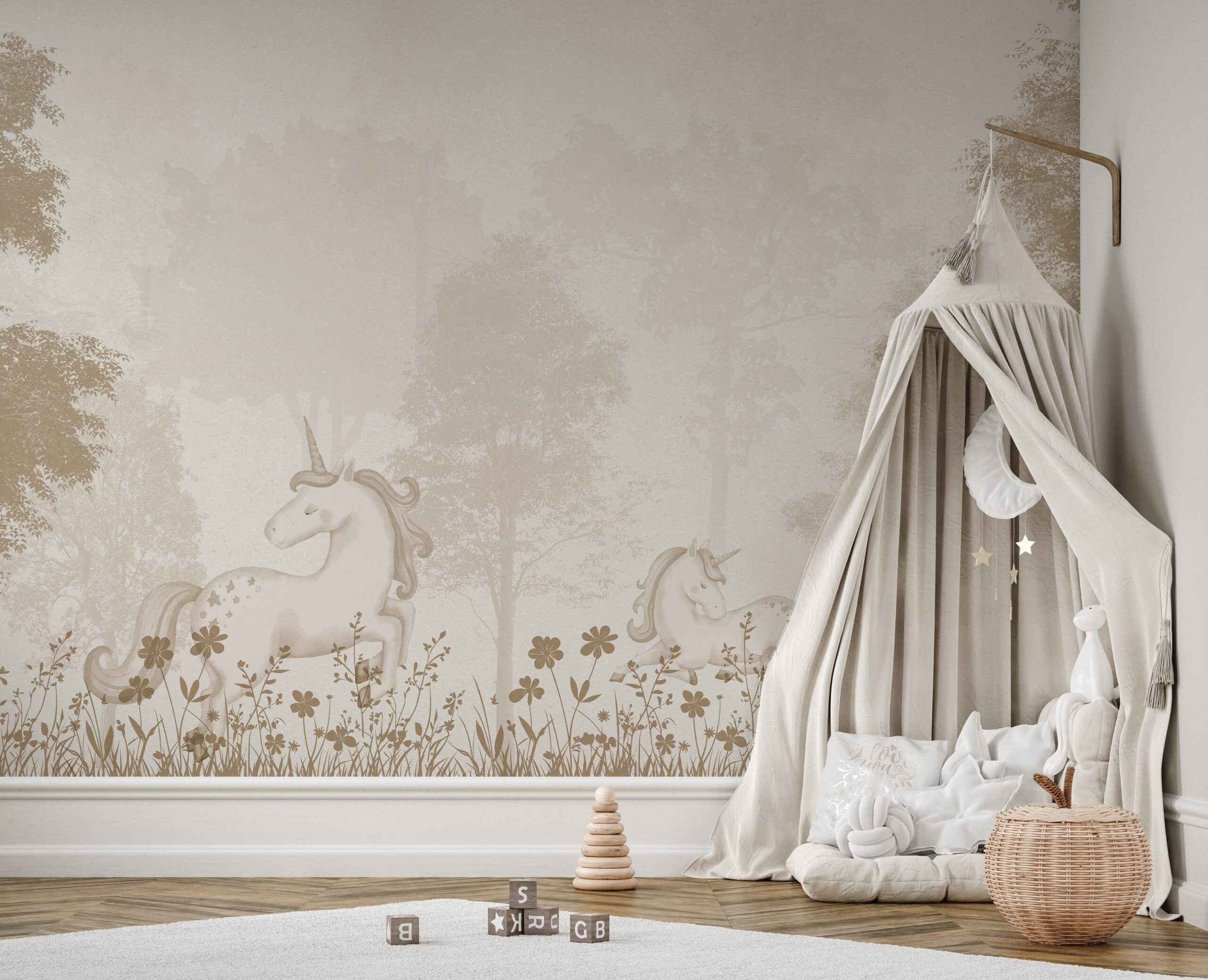 Detta är en perfekt idé för små drömmare som älskar berättelser fulla av underverk, magi och extraordinära varelser. Neutrala färger och mjuka linjer gör att dekorationen harmoniserar perfekt med ett barns känslighet och tillför värme, harmoni och lätthet till interiören.