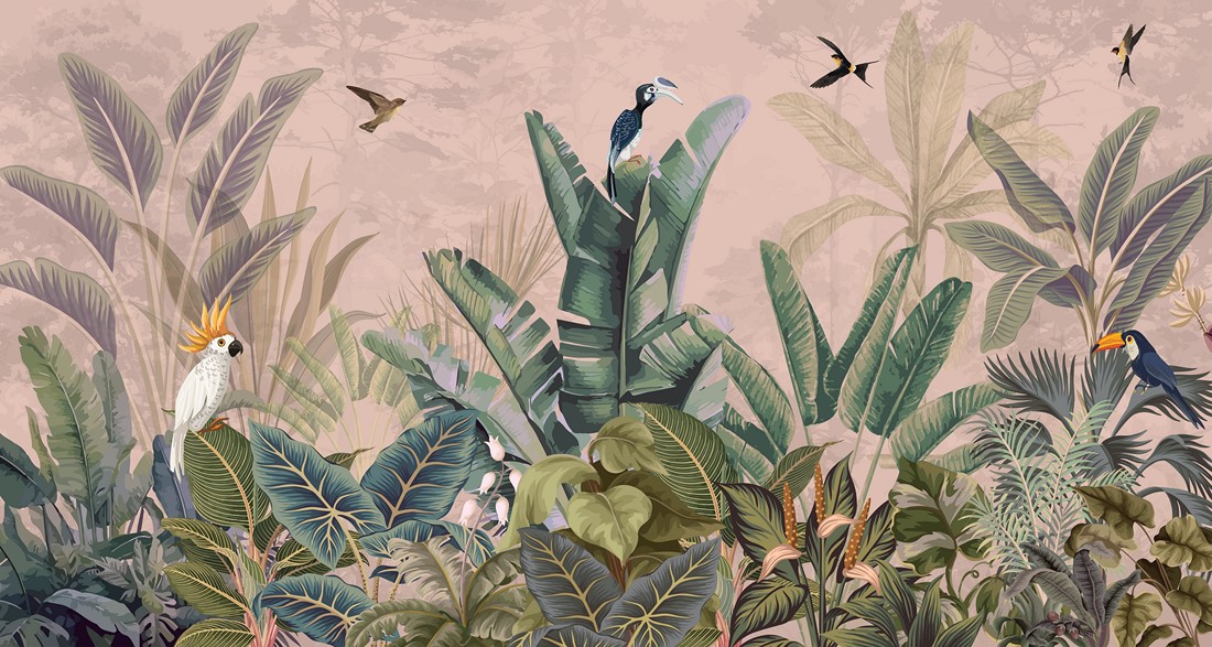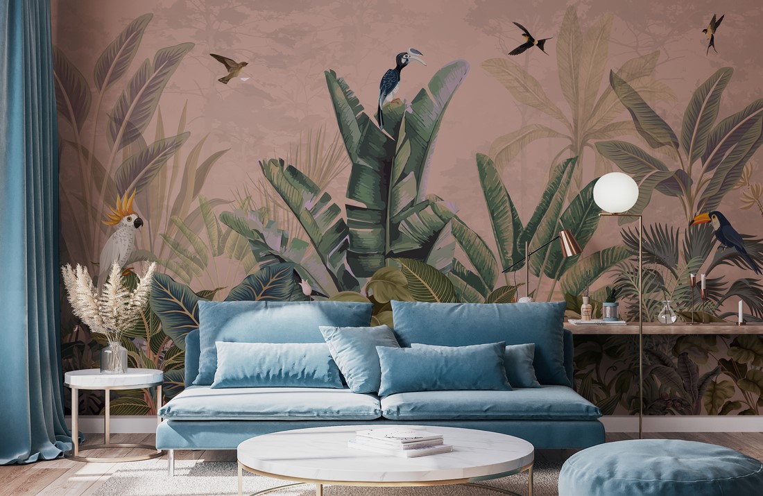 - BLOMMOR, BOHO, Fototapet, HALL, Rum, SOVRUM, VARDAGSRUM, Boho, Färger, Nyanser av grönt, Nyanser av rosa, Stil