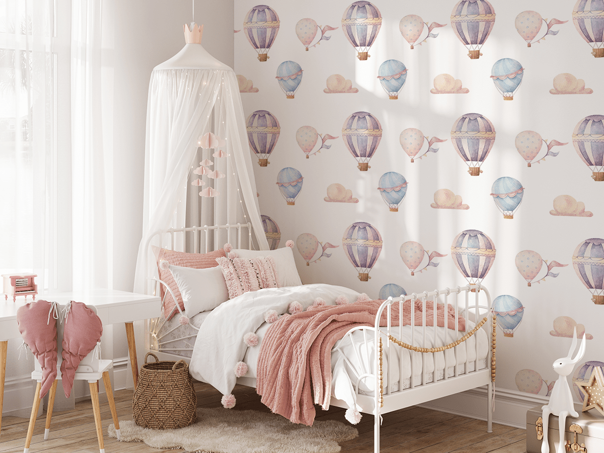Förvandla ditt barns rum till ett magiskt land med fototapeten ”Pastel Sky Dreams”. Detta delikata mönster med luftballonger och mjuka moln, i pastellnyanser av rosa, lila och blått, skapar ett mysigt och drömskt utrymme. Akvarellillustrationer tar med de yngsta på en svävande resa full av lugn, glädje och fantasi.