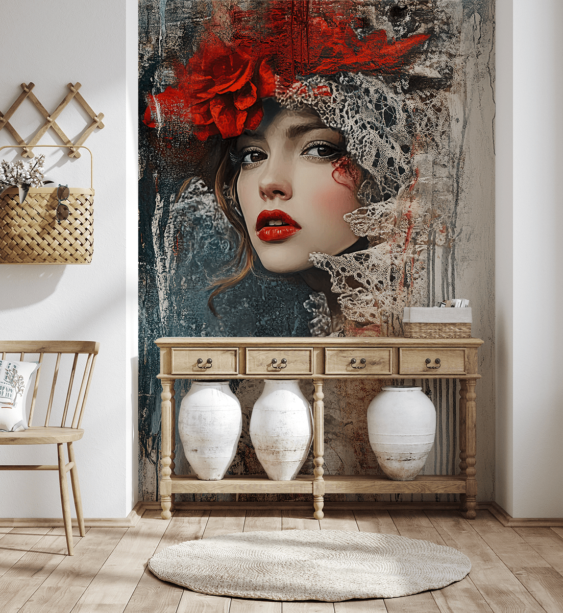 Ge ditt hem en unik atmosfär med fototapeten ”Red Mystery”. Denna spännande komposition kombinerar blommans intensiva röda färg med spetsens delikatess och ett mystiskt utseende, vilket skapar en effekt full av passion och sensualitet. En fototapet ger en unik stil till ditt utrymme och kombinerar konstnärligt uttryck med elegant minimalism.