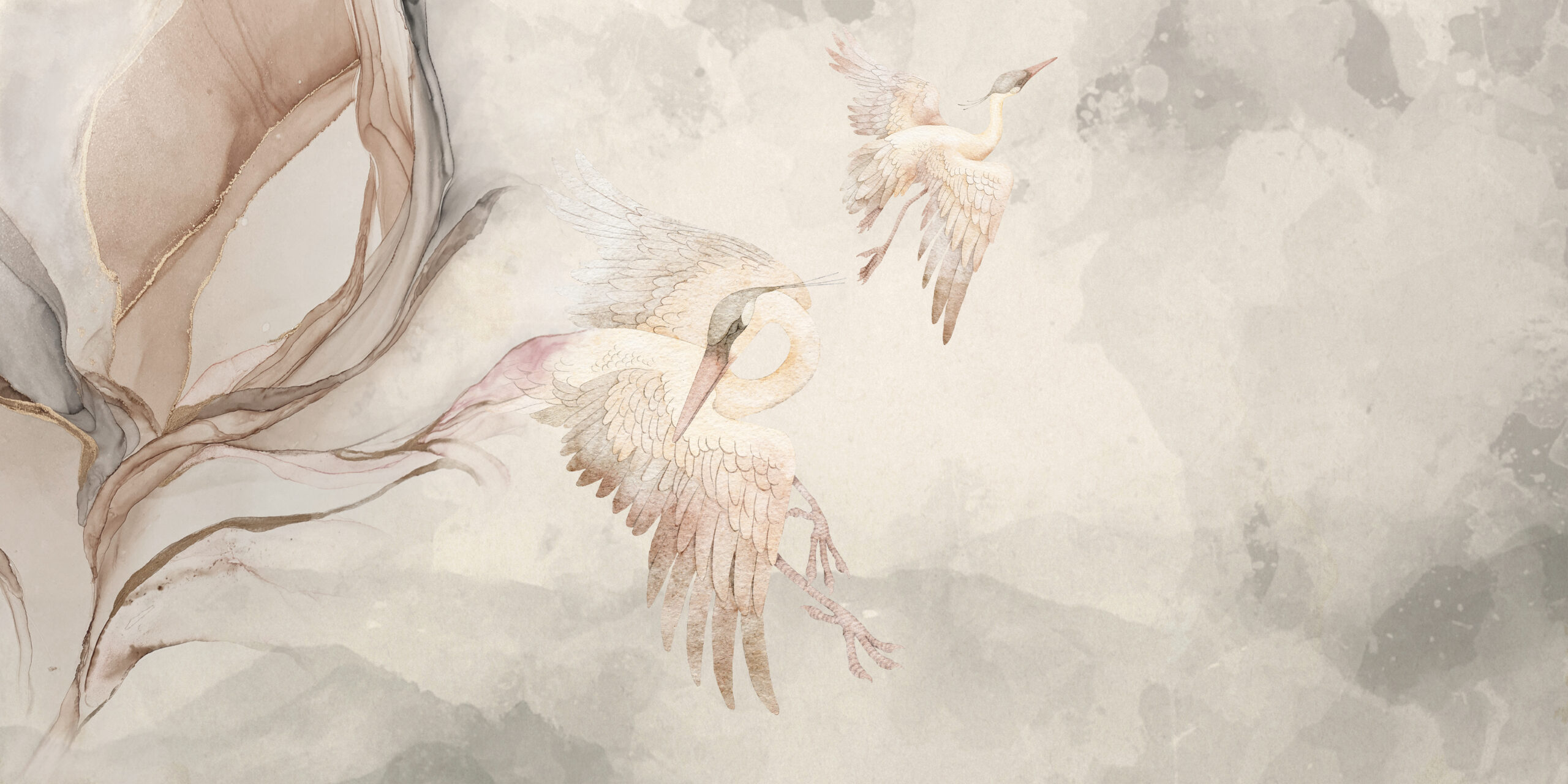Fototapeten ”Romantiska fåglar” – Subtil lätthet, målerisk elegans och naturens lugnande charm. Inför en atmosfär av frid och poetisk skönhet i din interiör med tapeten ”Romantiska fåglar”. Denna delikata akvarellkomposition av svävande fåglar utstrålar lätthet och harmoni. Subtila nyanser av beige, rosa och grått skapar en lugn, nästan eterisk bakgrund som perfekt kompletterar eleganta, organiska linjer. Det är det perfekta valet för dig som uppskattar konst inspirerad av naturen, raffinerad estetik och minimalistisk elegans. ”Romantiska fåglar” kommer vackert att förhöja karaktären hos ett sovrum, vardagsrum, relaxrum eller kommersiella utrymmen och ge dem en känsla av frihet och mildhet. Denna tapet är mer än bara dekoration – det är en visuell berättelse om frid, frihet och skönheten som är dold i enkelhet. Den ger konstnärlig stil, en romantisk atmosfär och tidlös sofistikering till alla interiörer.
