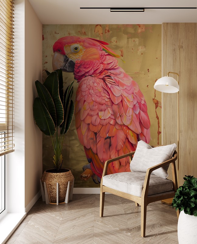 Fototapeten ”Pink Parrot Glow” – Exotisk finess, ädla färger och konstnärligt uttryck