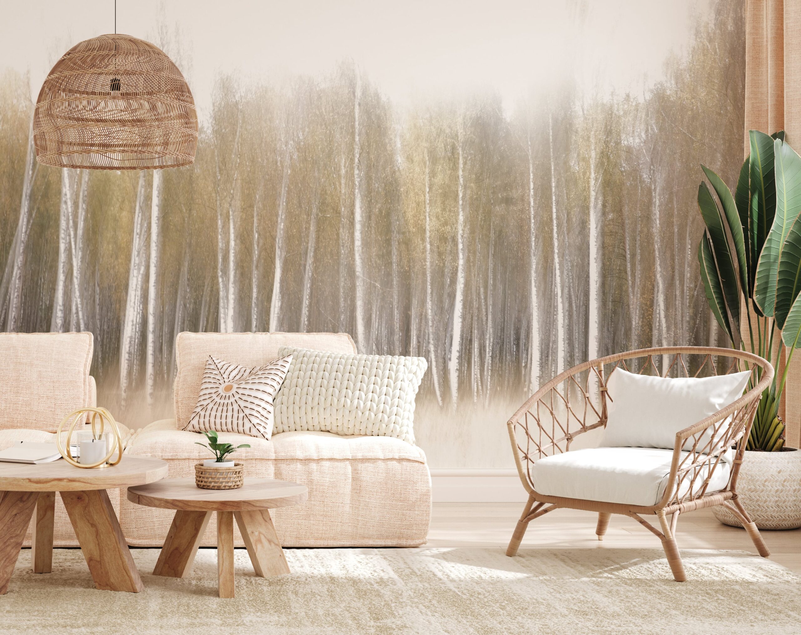 Fototapeten ”Forest Glow” – en magisk atmosfär, delikat dimma och naturlig harmoni inomhus
