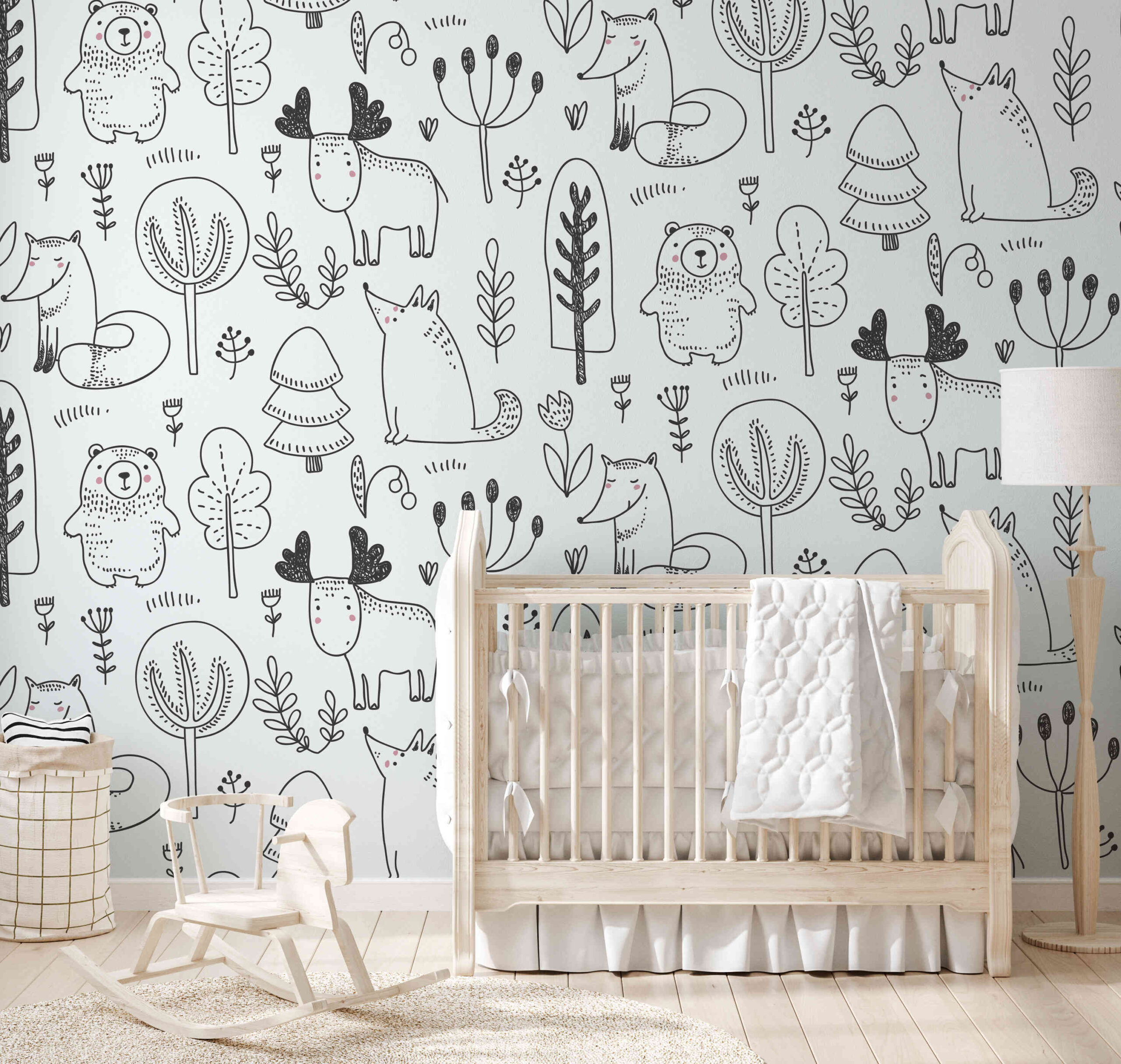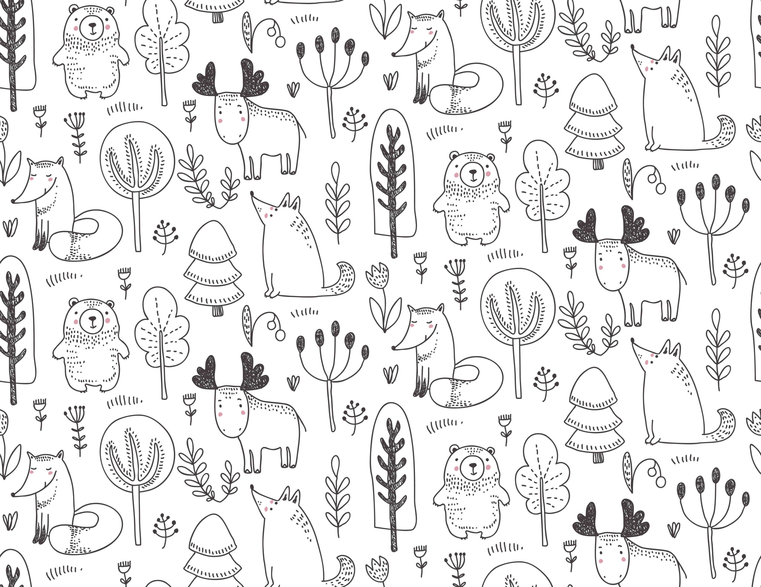 Bjud in bedårande nallebjörnar, rävar och älgar till ditt rum med fototapeten ”Skogsgos”. Detta roliga, handritade mönster i svartvitt med delikat rosa accenter kommer att transportera dig till en skogsvärld full av värme och vänskap. Enkla och söta figurer kommer att göra interiören mysig och full av barnslig glädje.