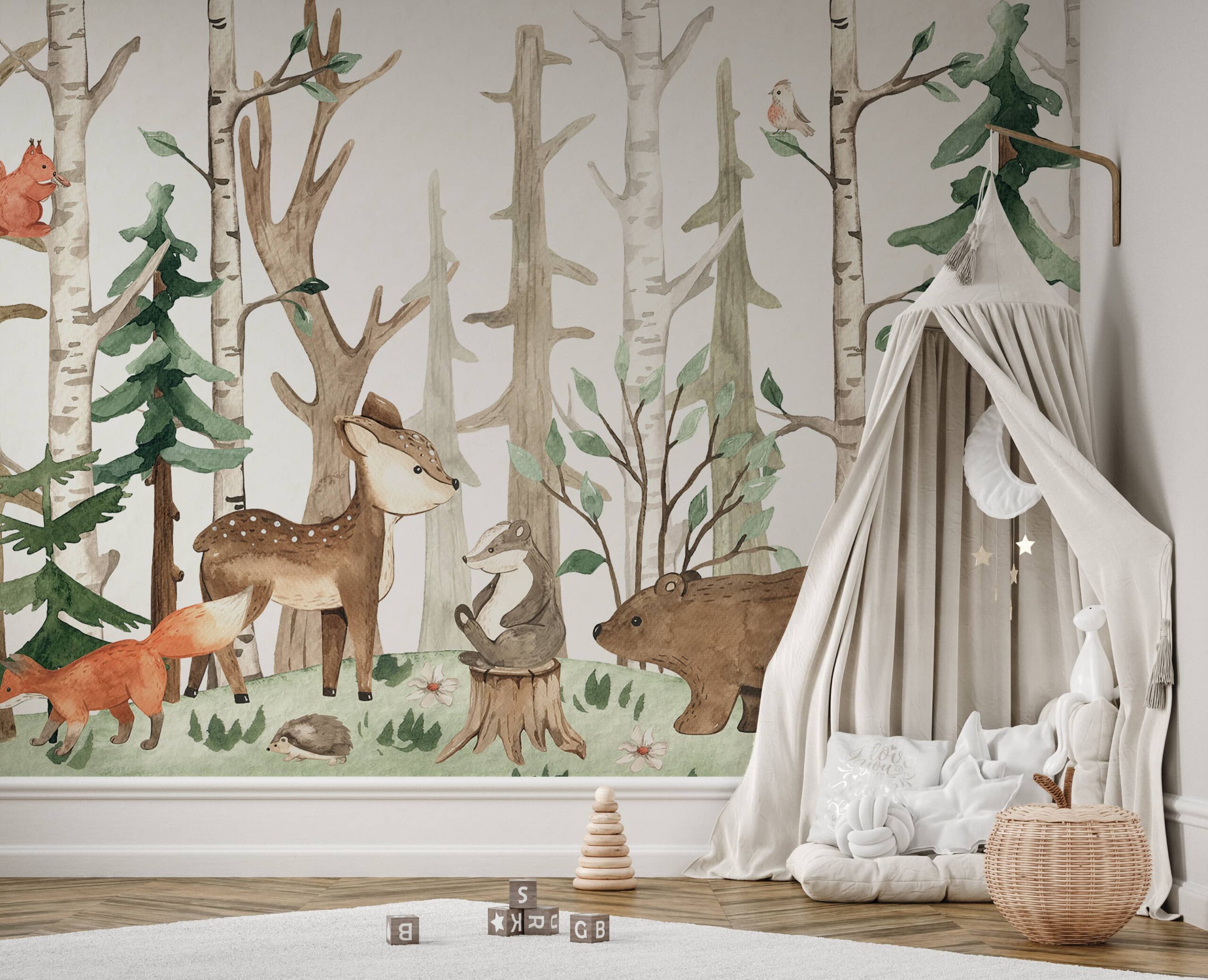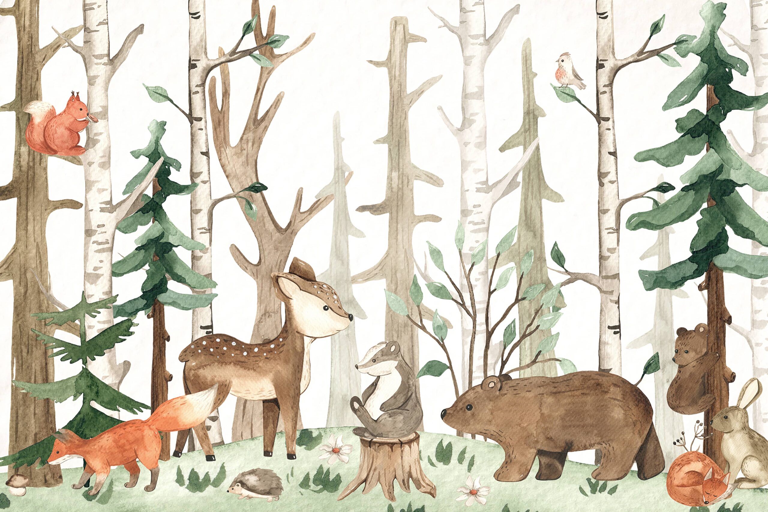 Transportera ditt barn till skogens magiska värld med fototapeten ”Forest Pack”. Detta unika akvarellmönster avbildar en fridfull skog full av vänliga djur – från ekorrar, via rävar, rådjur, igelkottar, till björnar och en kanin. Delikata färger, mjuka linjer och vänliga karaktärer skapar en varm och mysig atmosfär, som bidrar till lugn och utveckling av fantasin.