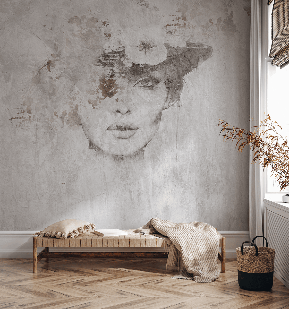 Inför en unik atmosfär i ditt hem med fototapeten ”Fade of Beauty”. Detta unika, konstnärliga mönster kombinerar ett porträtts delikatess med blommotivens förgänglighet, vilket skapar en komposition full av känslor och subtil magi. Dämpade färger och sensuella övergångar gör denna fototapet till en perfekt matchning för både moderna och klassiska inredningsstilar.