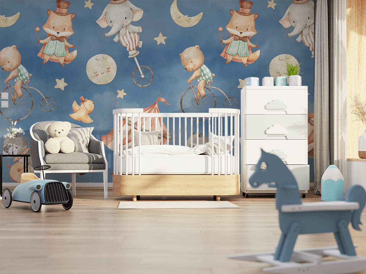 En fototapet är inte bara en dekoration – det är en färgstark berättelse som introducerar barn till en värld av glädje, äventyr och fantasins oändliga möjligheter.