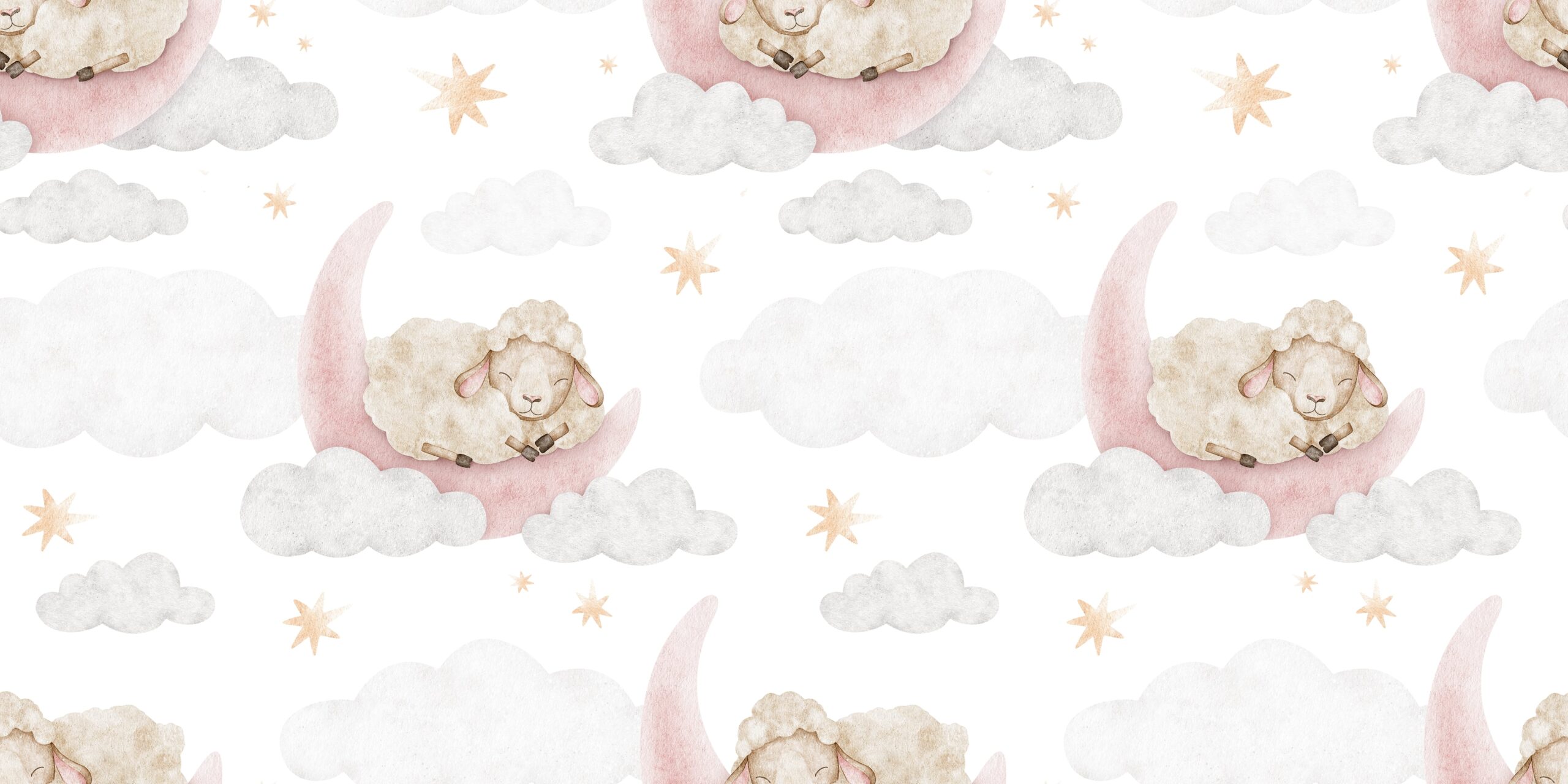 Skapa en atmosfär av lugn och ömhet i ditt barns rum med fototapeten ”Sleepy Sheepland”. Detta charmiga akvarellmönster som avbildar sovande får på rosa månar bland fina moln och stjärnor transporterar din lilla till ett land av fridfulla drömmar och trygg vila. Pastellfärger och subtila illustrationer skapar en vänlig, varm miljö som bidrar till avkoppling och somnande.