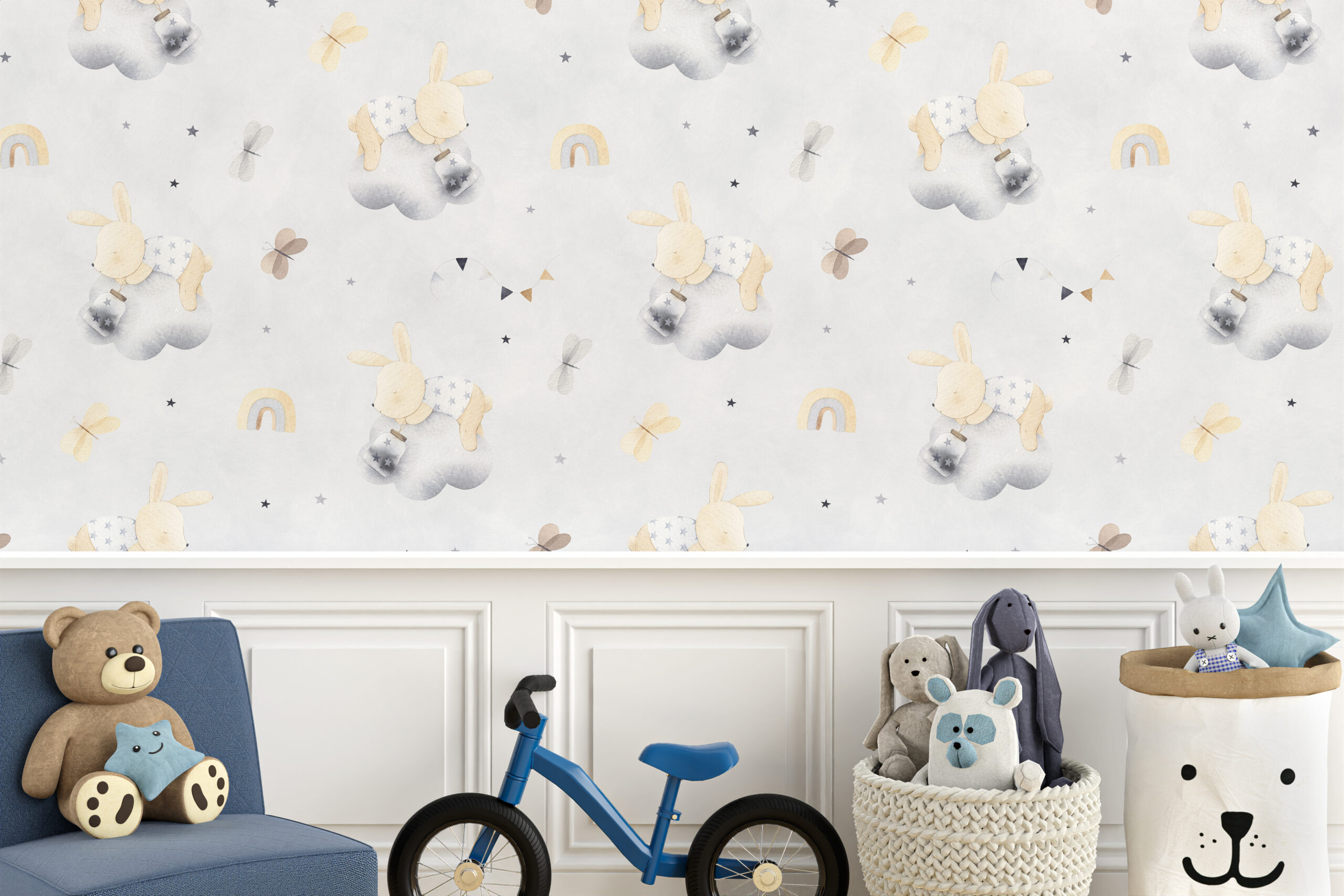 Denna bedårande väggmålning föreställer en sovande kanin som uppmuntrar lugn och ro i alla rum. Den är idealisk för sovrummet, barnrummet eller till och med barnkammaren och skapar en atmosfär av lugn och mysighet.