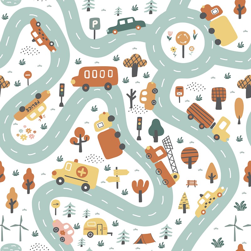 Tapeten ”City on Wheels” är en dynamisk och kreativ väggdekoration som ger din interiör energi från stadslivet och modern design. Motivet med lastbilar och bilar i rörelse kombinerar geometriska element med rörelsens symbolik – vilket skapar en livfull, pulserande komposition. Perfekt för ett barnrum eller ett kreativt utrymme – tapeten livar upp interiören och ger en unik karaktär. ”City on Wheels” är ett förslag för barn som älskar bilar, att leka med leksaksbilar, men också trafikregler!