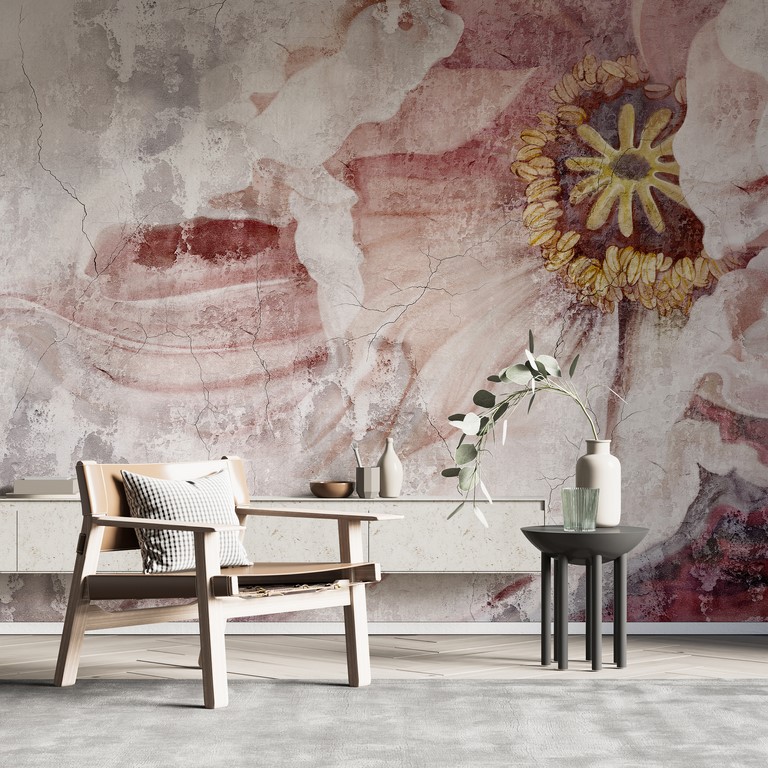 Denna underbara väggmålning har en delikat, otydlig vit blomma som ger subtilitet och friskhet till alla rum. Blommor är alltid ett utmärkt dekorationsmotiv eftersom de symboliserar skönhet och natur, och dessutom ger de lugn och harmoni till inredningen.