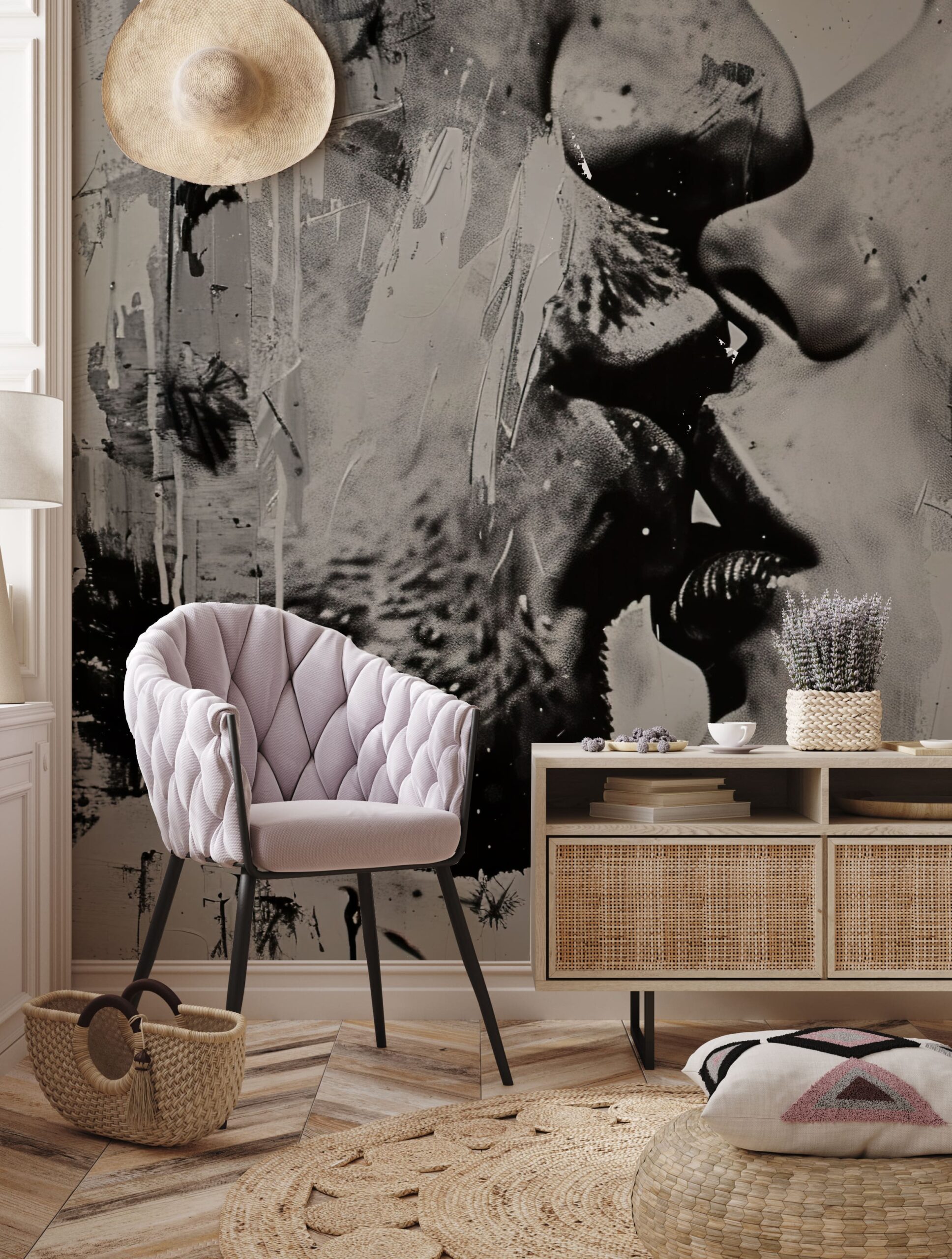 - BLOMMOR, BOHO, Fototapet, HALL, Rum, SOVRUM, VARDAGSRUM, Boho, Färger, Nyanser av grönt, Nyanser av rosa, Stil