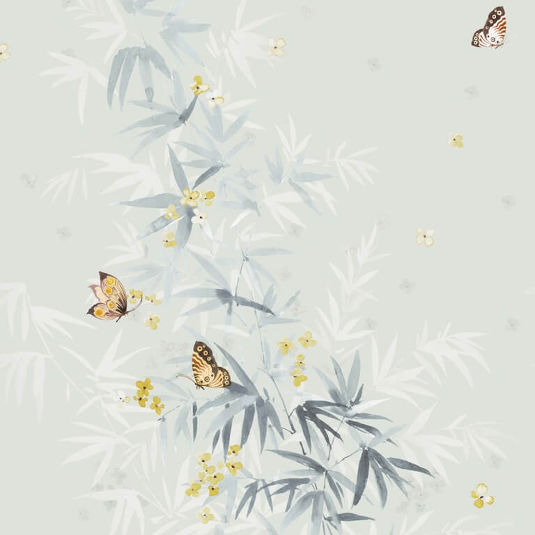 Denna charmiga väggmålning föreställer tre vackra fjärilar som försiktigt flyger omgivna av blommor och fina kvistar. Deras subtila färger och eleganta former ger din inredning en unik charm och originalitet.