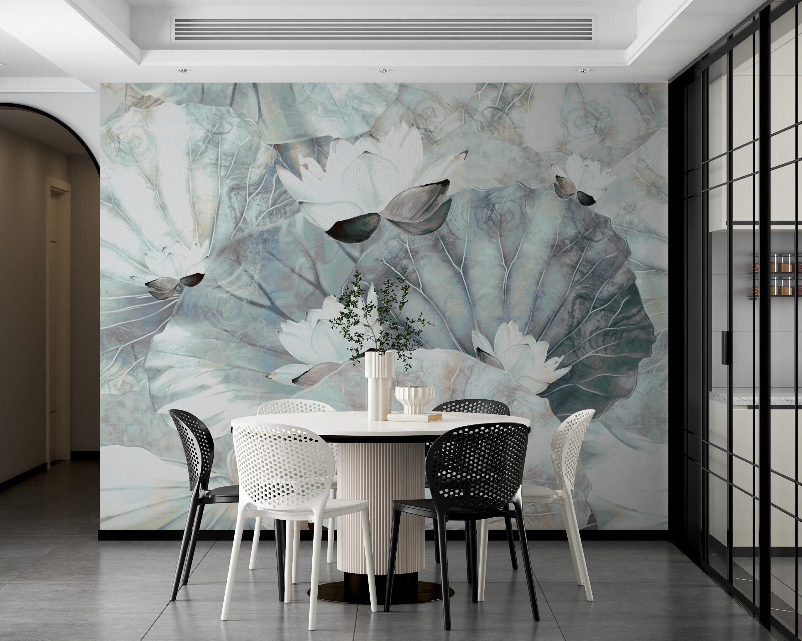 White Nenufars väggmålning är det perfekta sättet att liva upp alla rum. Denna vackra väggmålning visar känsliga vita nenufarer på ett lugnt vattendrag, vilket skapar en otroligt avkopplande utsikt.