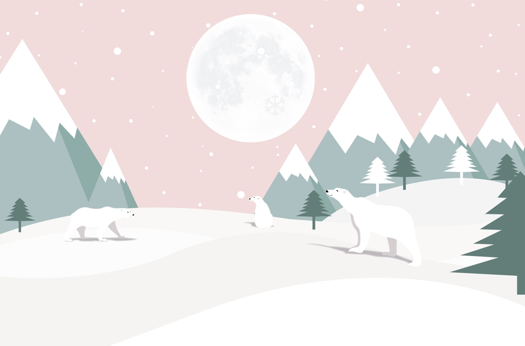 Denna charmiga väggmålning föreställer vita björnar under en fullmåne, vilket skapar en magisk och unik atmosfär i din interiör. Den är perfekt för sovrummet, barnrummet eller vardagsrummet och ger en känsla av mysighet och mystik. Tack vare den höga kvaliteten på trycket behåller bilden alla detaljer och färger, vilket ger rummet en unik karaktär.