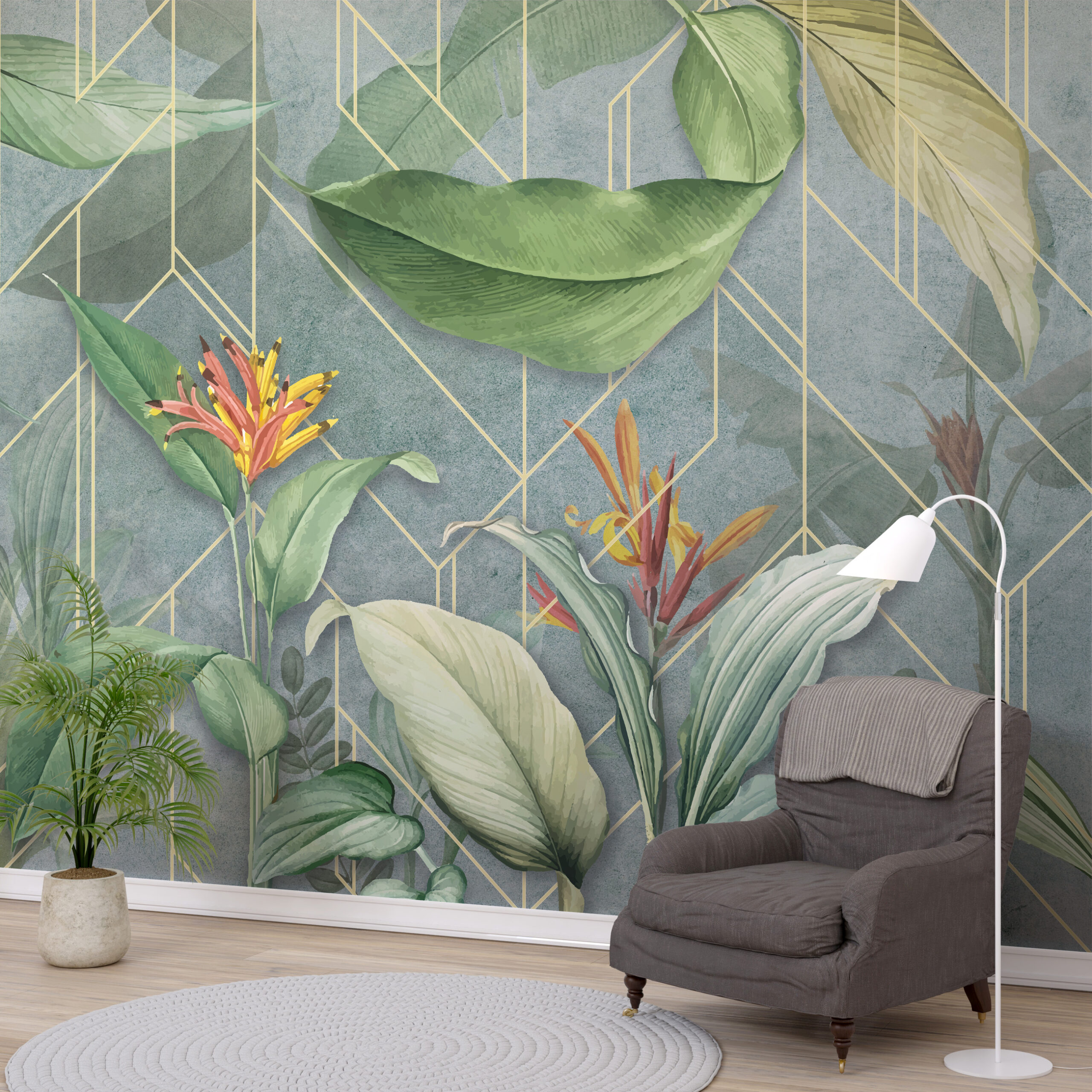 - BADRUM, Fototapet, KONTORET, MURAL, NATUR, Rum, SOVRUM, TROPISKA LÖV, VARDAGSRUM