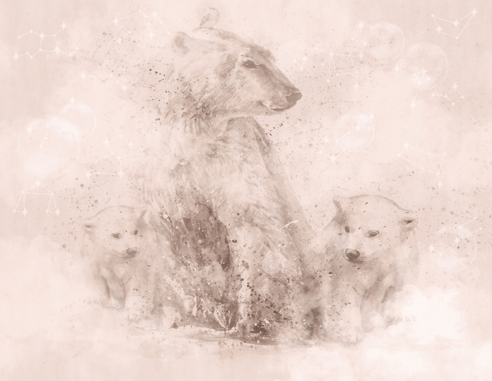Denna unika väggmålning visar en bedårande björnfamilj – en björnmamma med en björnunge. De söta djuren skapar en mysig och varm atmosfär i ditt hem, perfekt för att koppla av och varva ner.