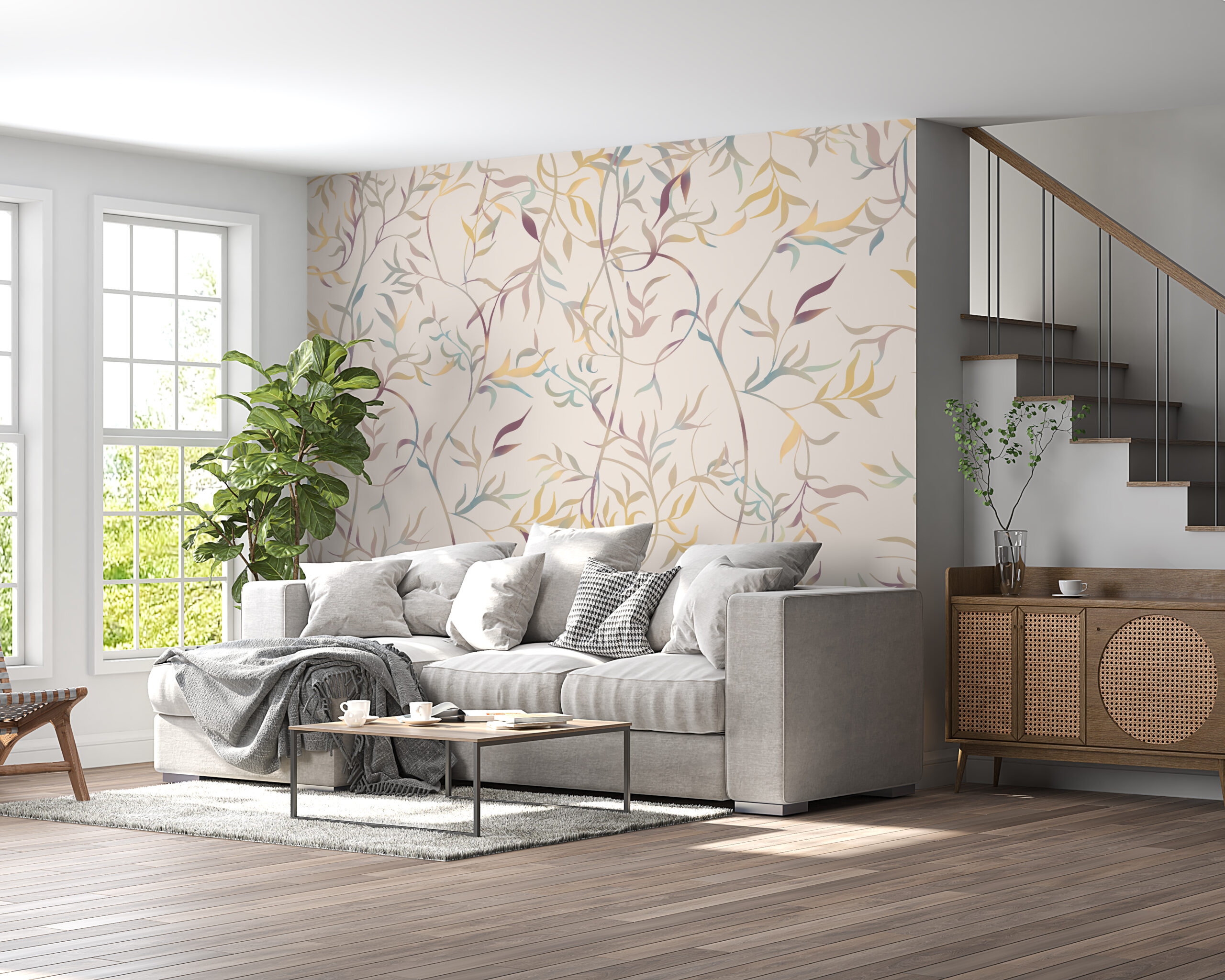 Skapa din egen oas av lugn och skönhet i ditt hem med denna väggmålning med ett motiv av virvlande grenar. Beställ redan idag!