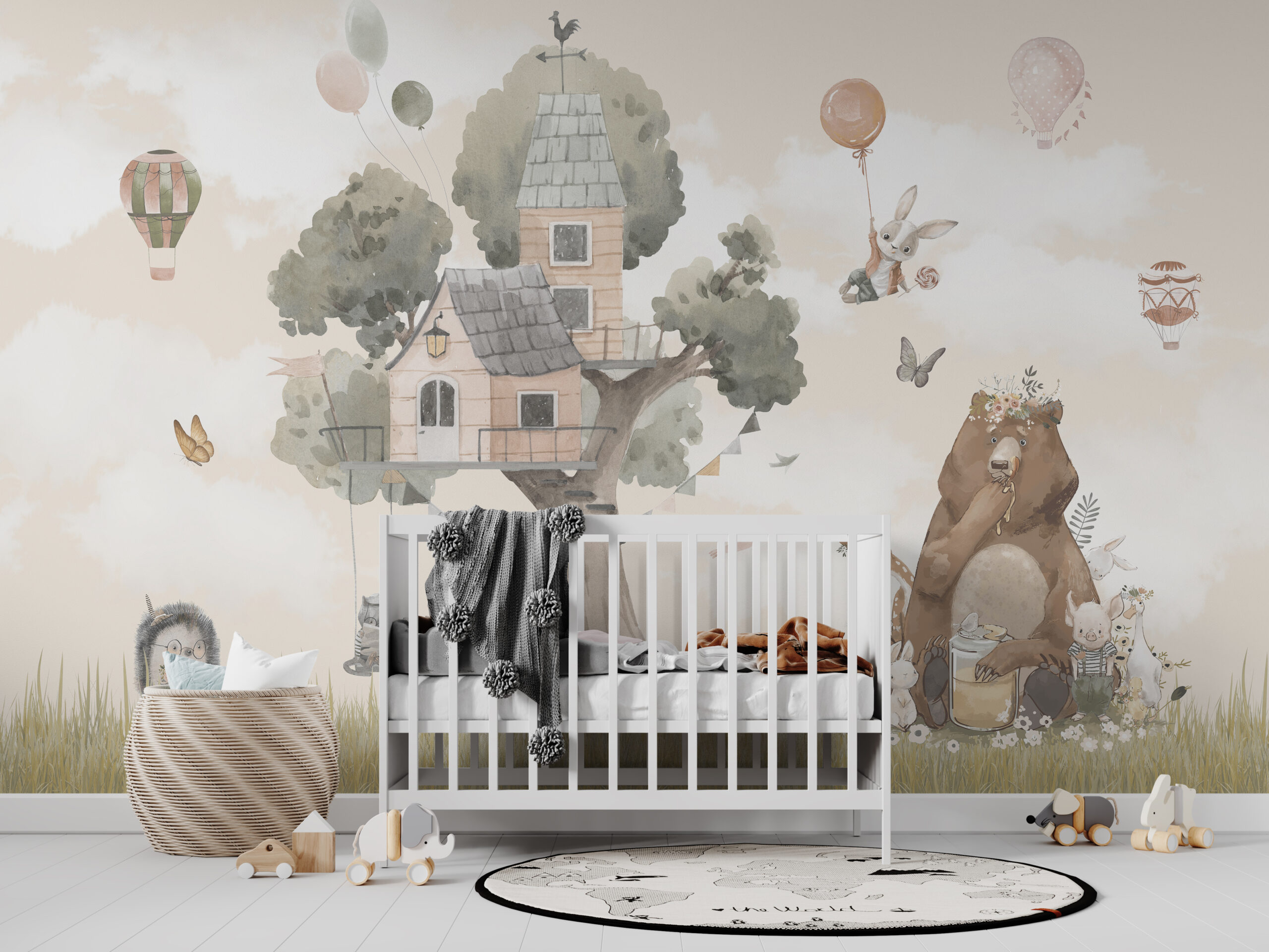 Letar du efter den perfekta dekorationen till ditt barns rum? Denna charmiga Tree House väggmålning är det perfekta valet! Med den skapar du en magisk atmosfär som kommer att väcka fantasin och glädja ditt lilla barn.