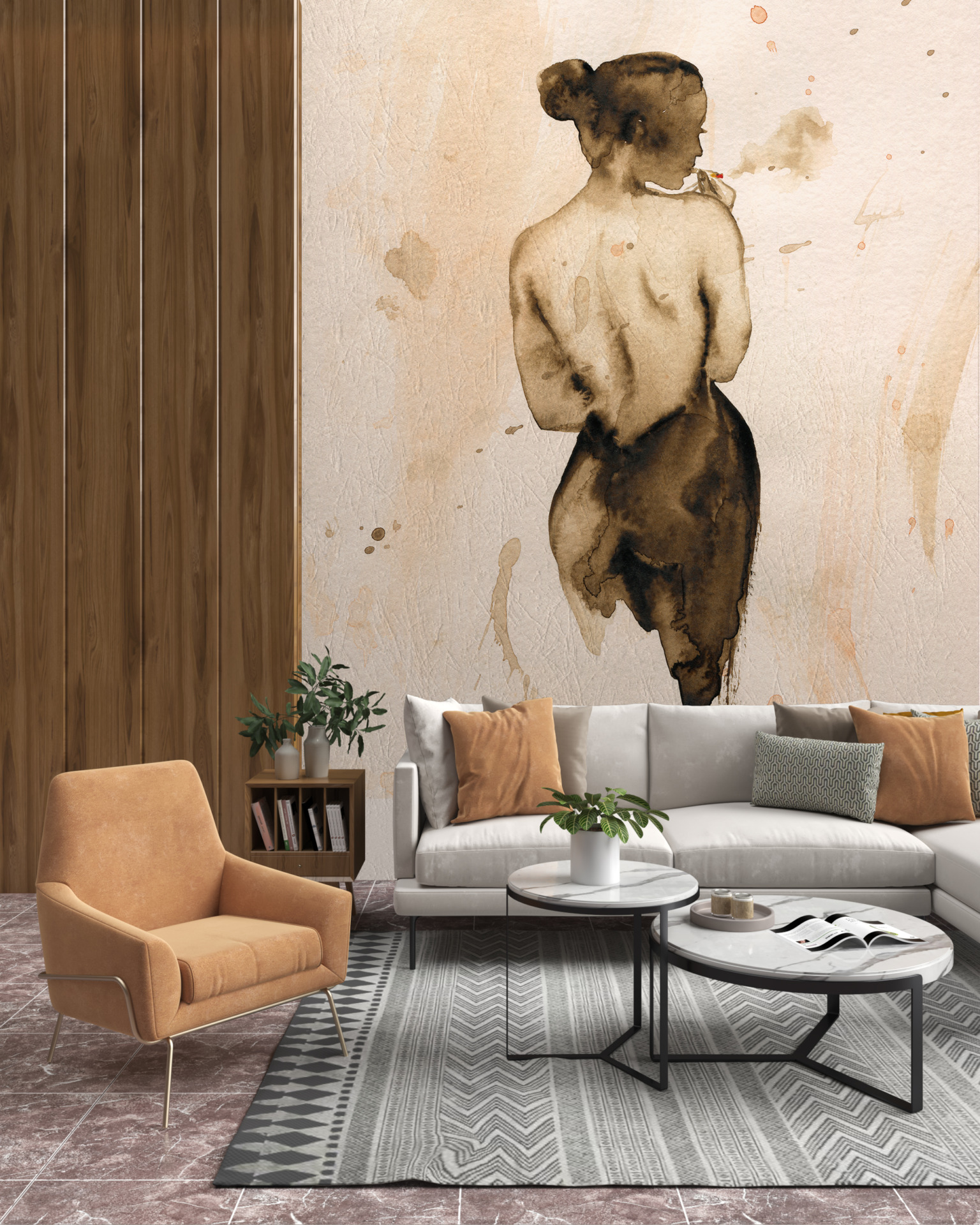 Baksidan av en kvinnlig väggmålning kan vara det perfekta tillskottet till ett vardagsrum, sovrum eller till och med ett kontor. Tack vare sin mångsidighet passar den in i många inredningar och tillför elegans och sofistikering.