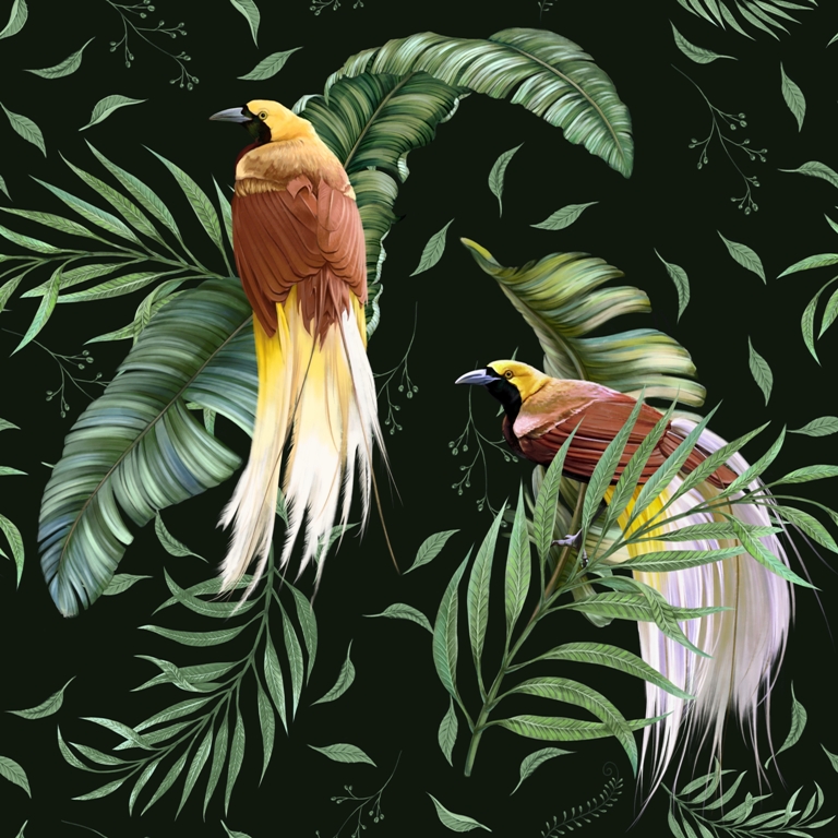 Exotic Bird Couple-tapeten är perfekt för vardagsrummet, sovrummet eller barnrummet och ger rummet en unik atmosfär och karaktär. Den kan utgöra den perfekta bakgrunden för en exotisk, tropisk eller boho-betonad inredning.