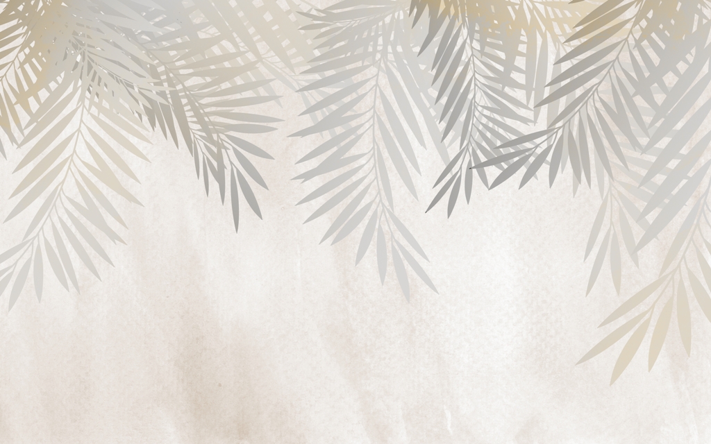 Denna väggmålning visar vackra palmgrenar täckta av exotiska löv, dolda bakom en mystisk dimma. Med det här temat kan du känna dig som om du har förflyttats till en tropisk plats, bort från de dagliga bekymren och stadens liv och rörelse.