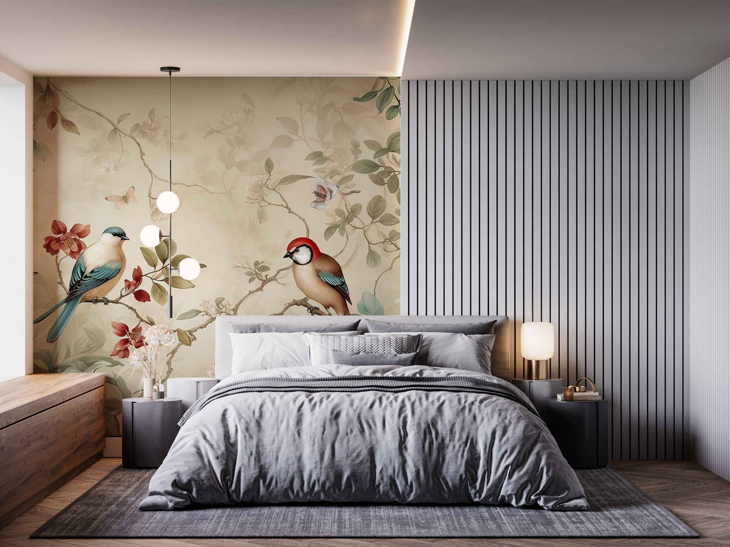 Väggmålning Fåglar på ett blommande träd