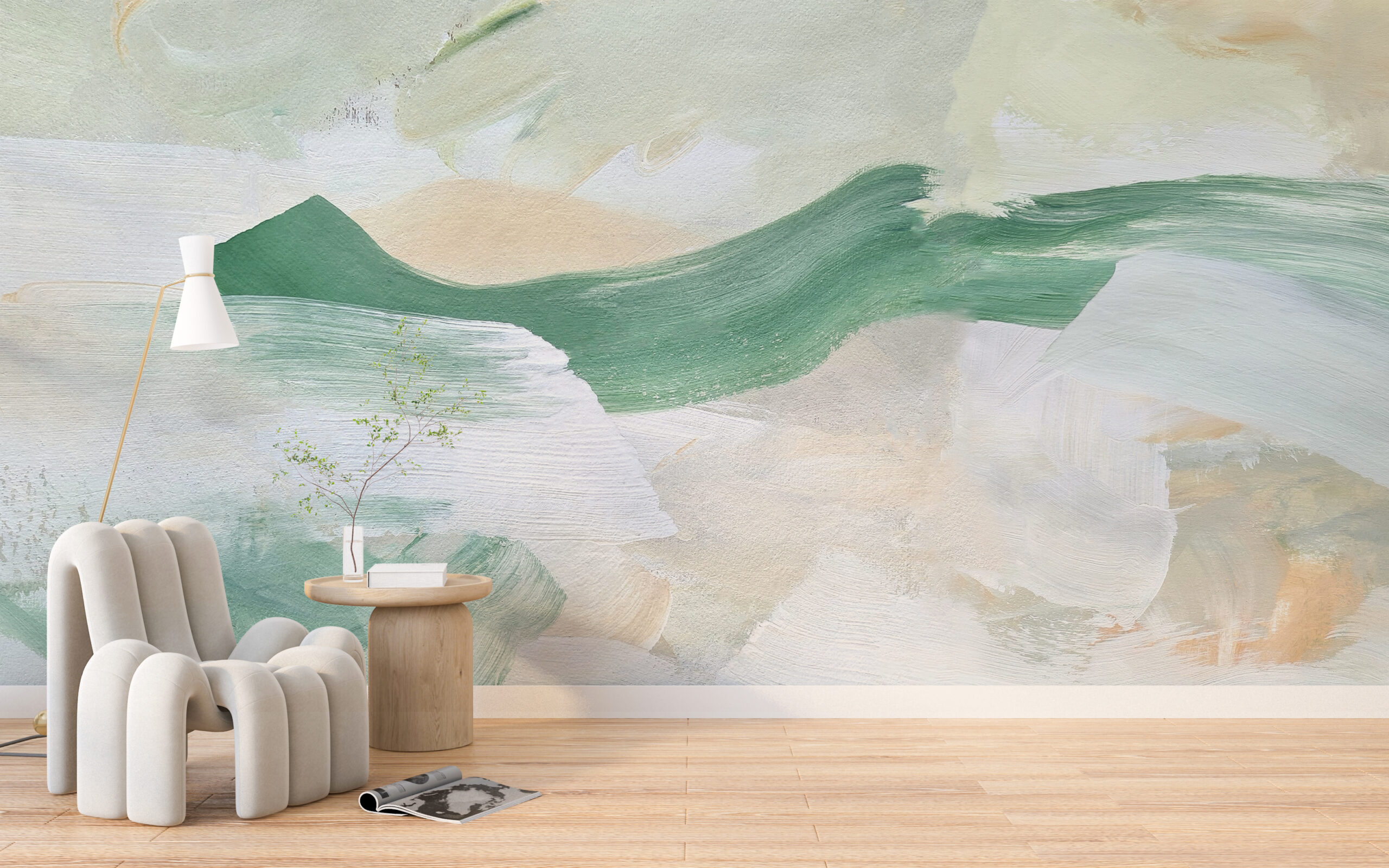 Denna väggmålning är idealisk för rum där du vill skapa en harmonisk atmosfär full av lugn och avkoppling. Gröna abstraktioner stimulerar fantasin och ger en paus från vardagen.