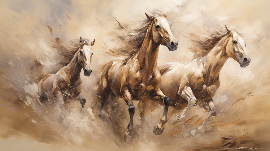 En målning av hästar på flykt är inte bara ett dekorativt tillskott till ett rum, utan också en källa till positiv energi och inspiration. Det gör din lägenhet unik och full av liv.